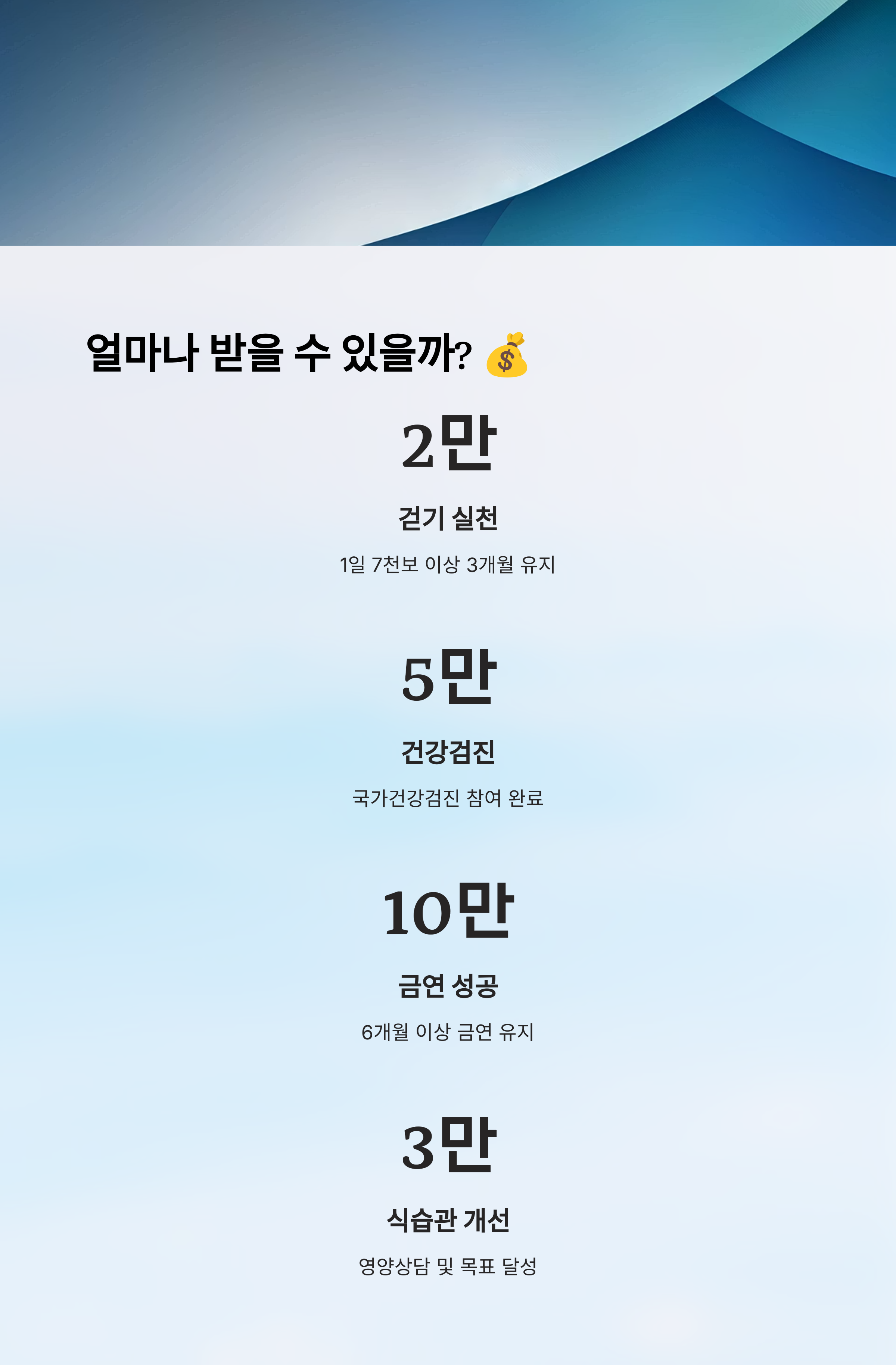 | 금연 성공 | 6개월 금연 유지 | 최대 10만 포인트 |