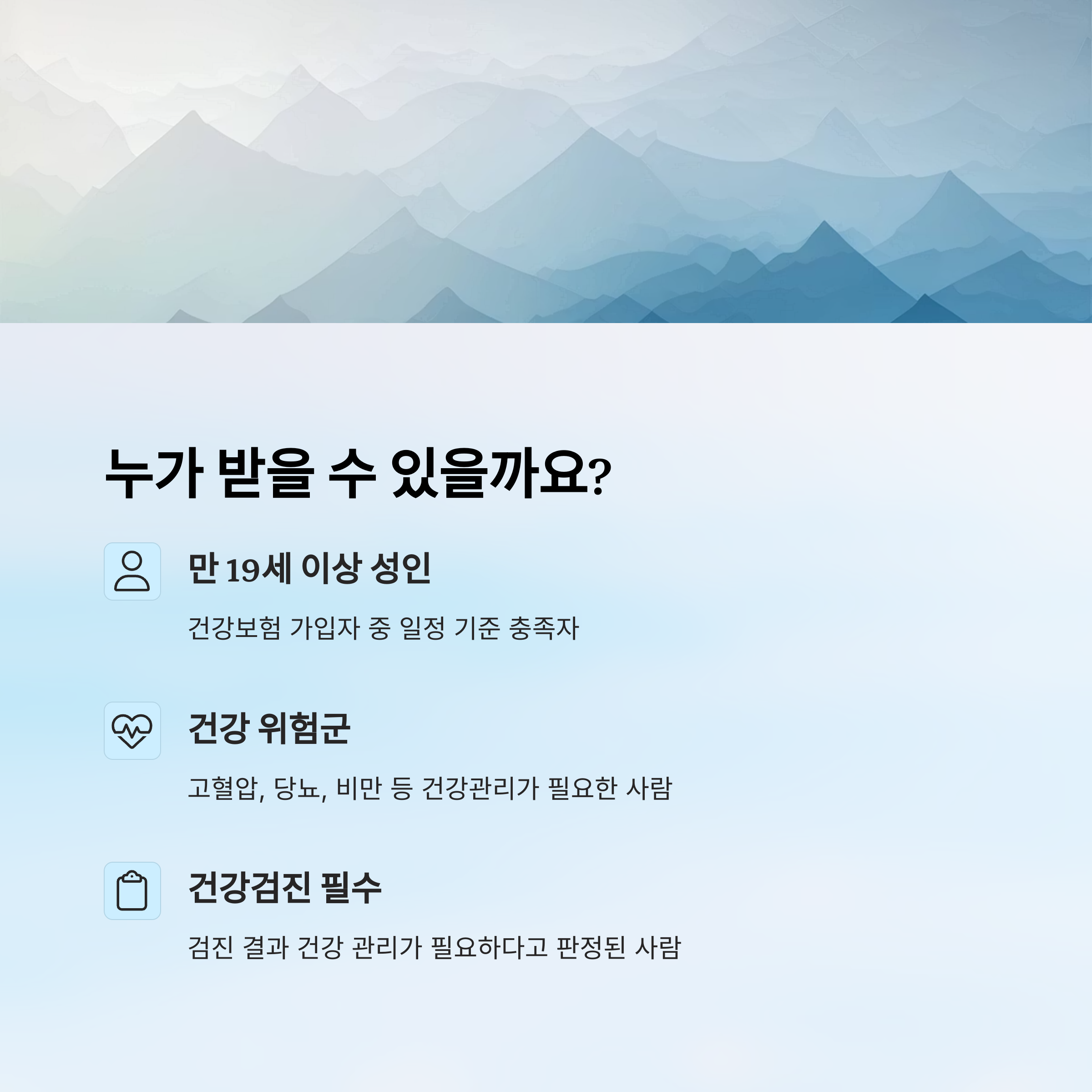 - 🔹 국민건강보험공단에서 지정한 의료기관 또는 센터를 통해 참여