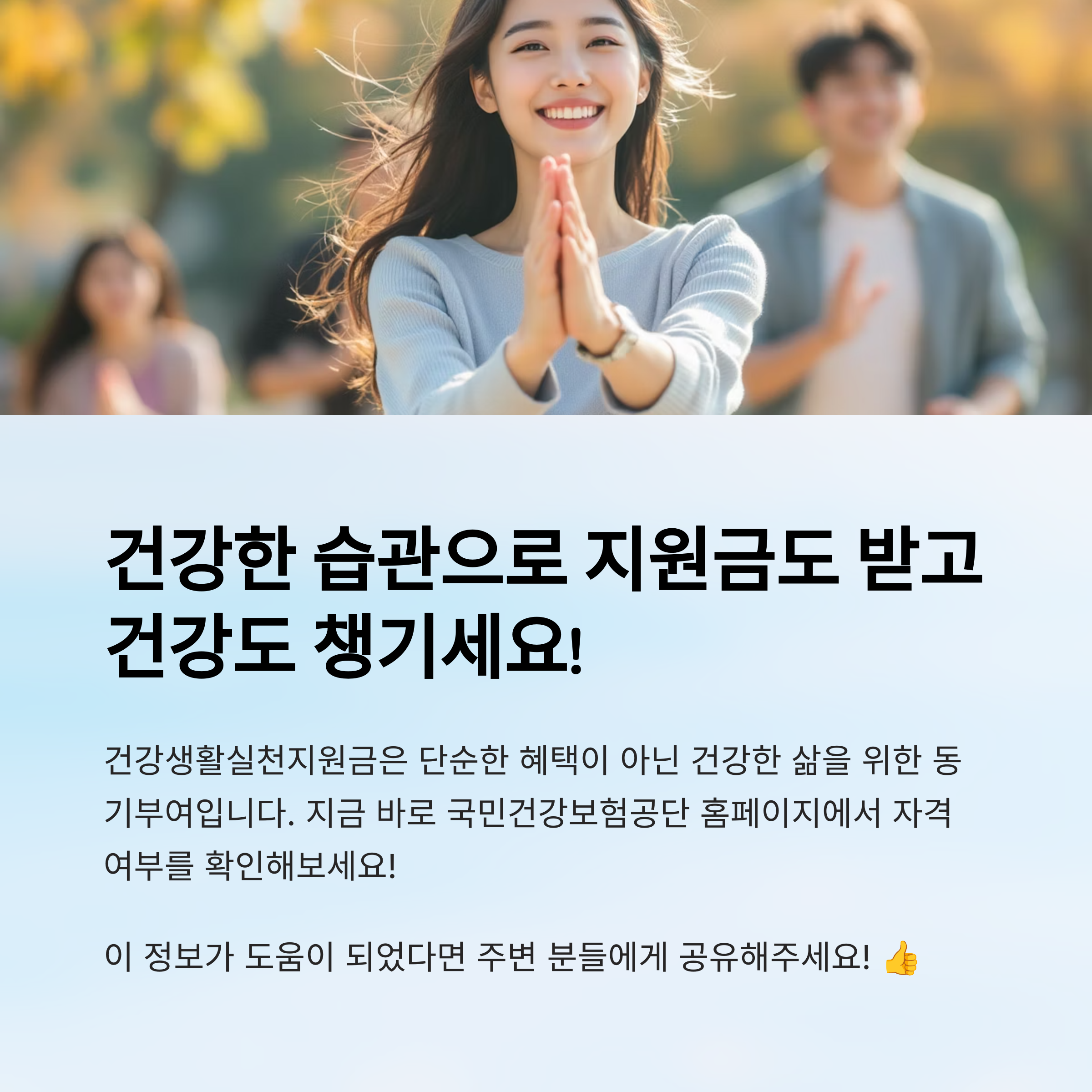 많은 분들이 건강생활실천지원금이 정확히 어떤 제도인지, 누가 받을 수 있는지, 신청 방법은 어떻게 되는지 궁금해하시죠? 지금부터 하나씩 자세히 살펴볼게요! 😊