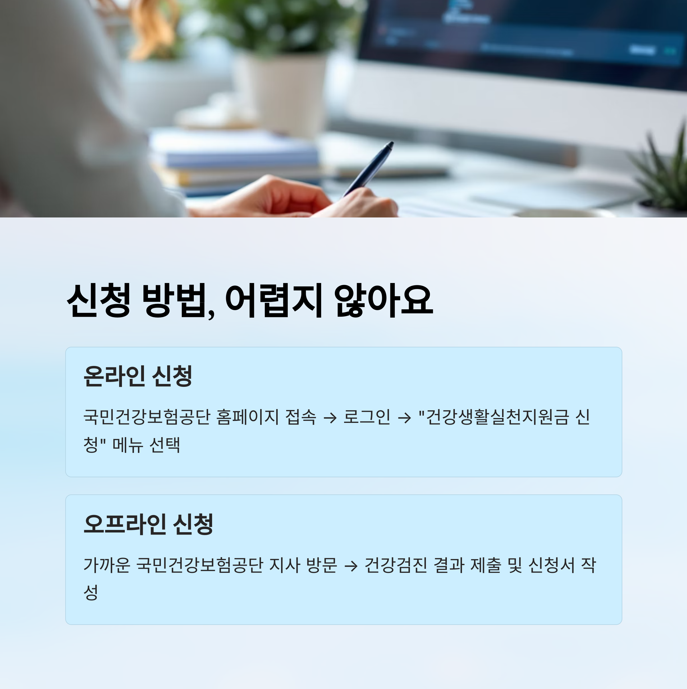 건강생활실천지원금을 받으려면 먼저 신청이 필요해요! 신청 과정은 어렵지 않지만, 꼭 필요한 절차를 따라야 해요. 온라인과 오프라인 모두 신청할 수 있으니 편한 방법을 선택하면 돼요. 😊