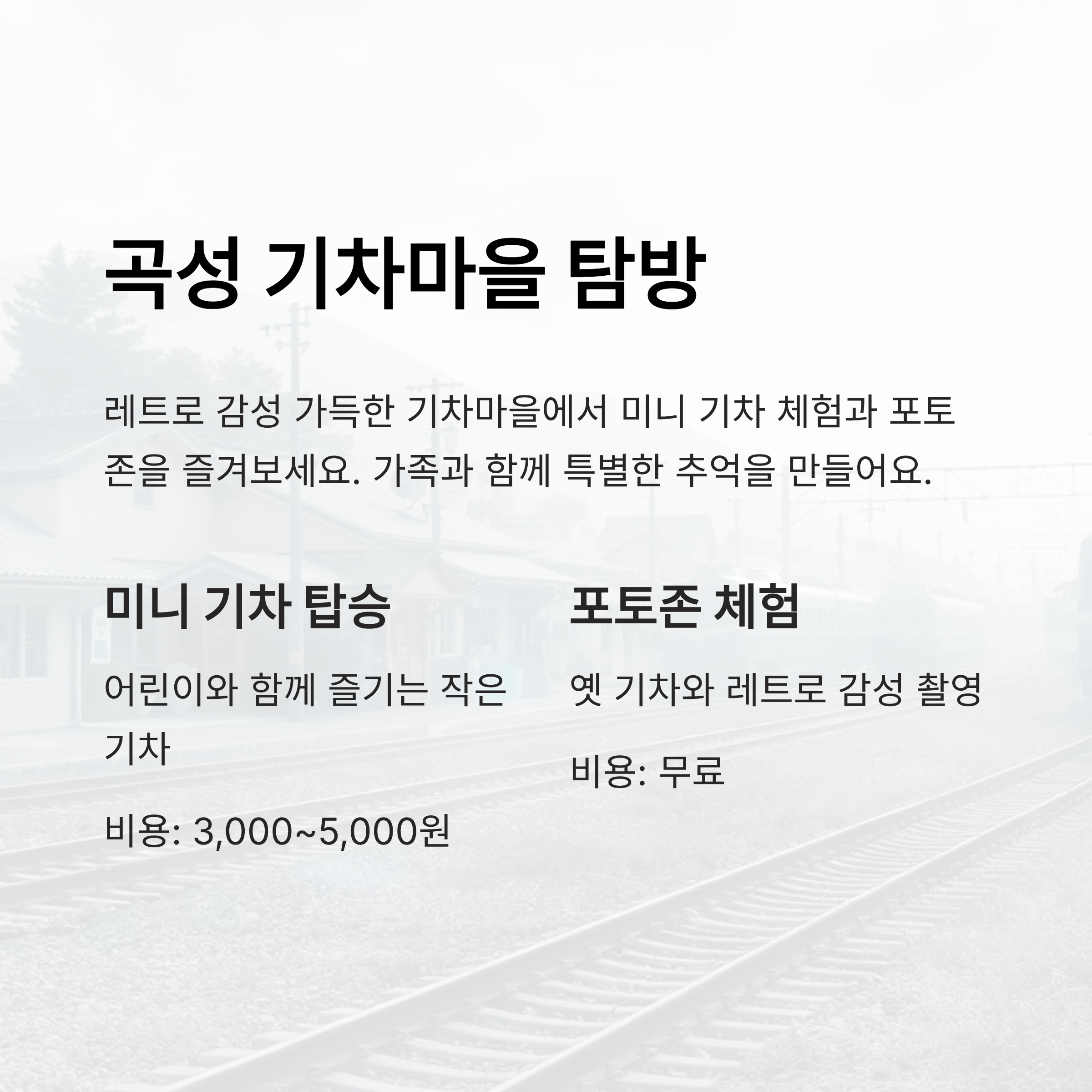 🍏 곡성 기차마을 주요 체험 안내표