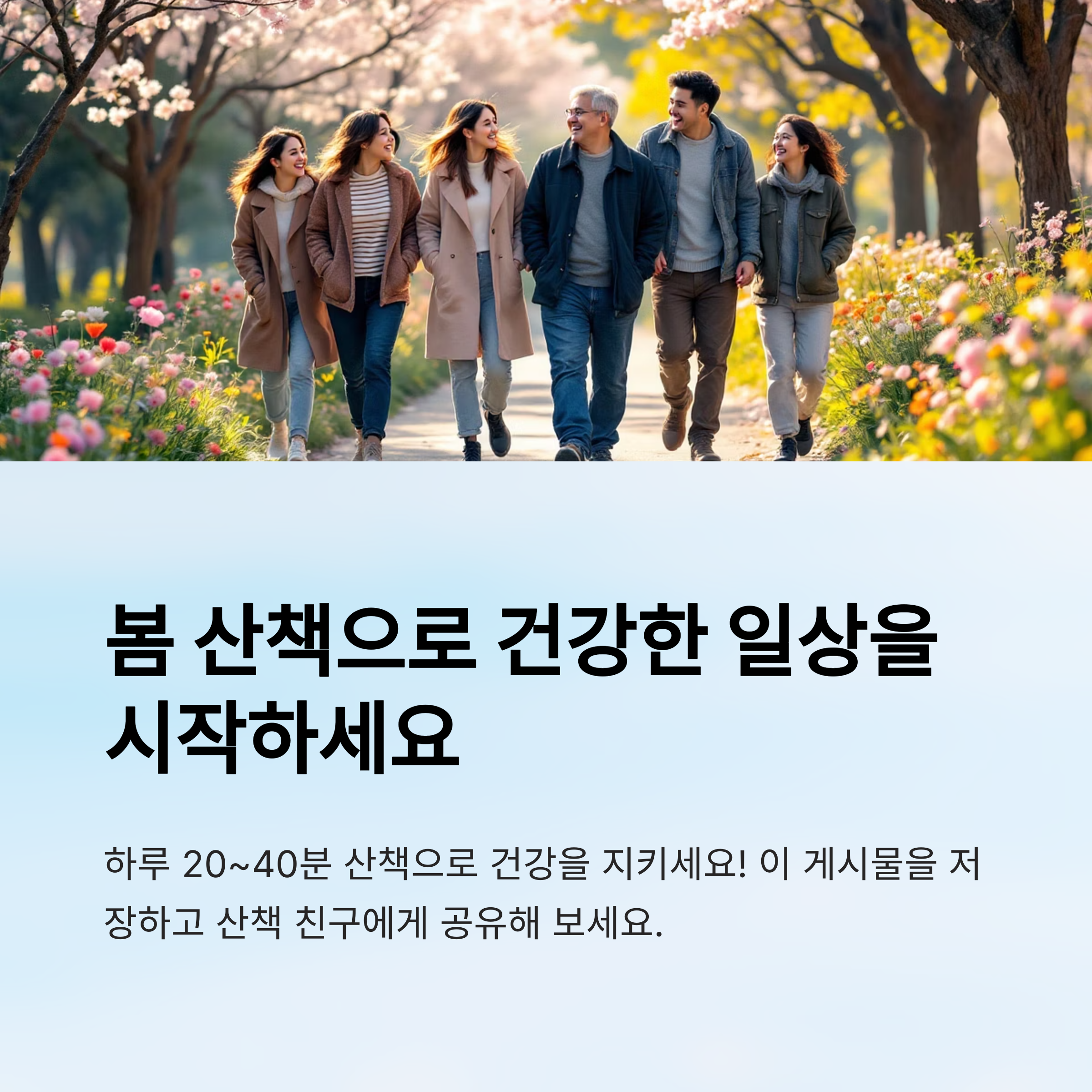 또한 걷기는 관절에 무리를 주지 않기 때문에 나이와 상관없이 누구나 실천 가능한 운동이에요. 특히 봄처럼 기온이 적당한 계절에는 운동 습관을 들이기에도 딱 좋아요. 지금이 바로 시작할 타이밍이에요 😊