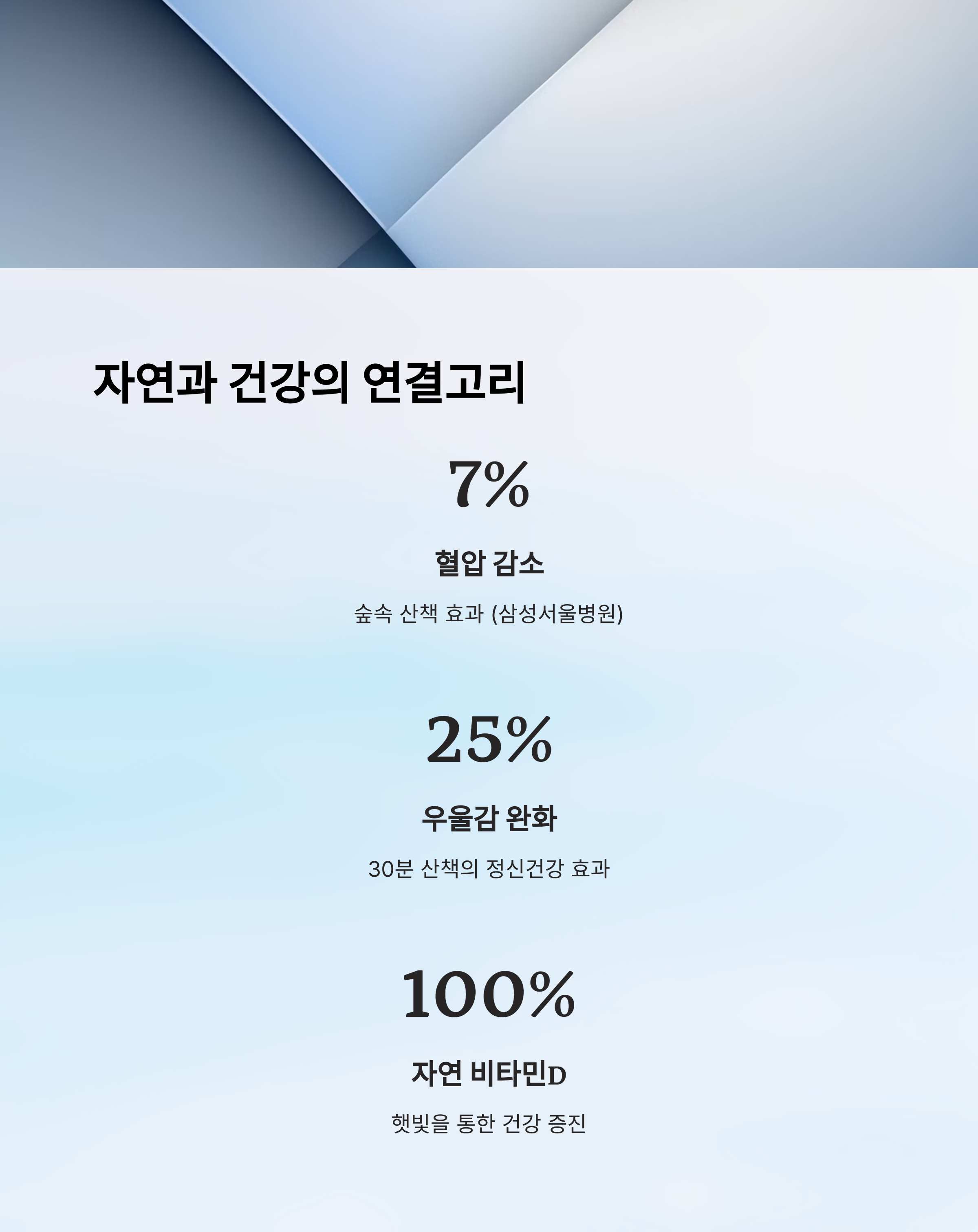 자연 속을 걷는 건 그 자체로도 훌륭한 건강 습관이에요. 걷기 운동은 혈액순환을 촉진시키고, 면역력을 높이며, 심장 건강에도 좋아요. 여기에 ‘자연’이라는 요소가 더해지면, 단순한 유산소 운동을 넘어 감정적인 힐링까지 가능하답니다 🌱