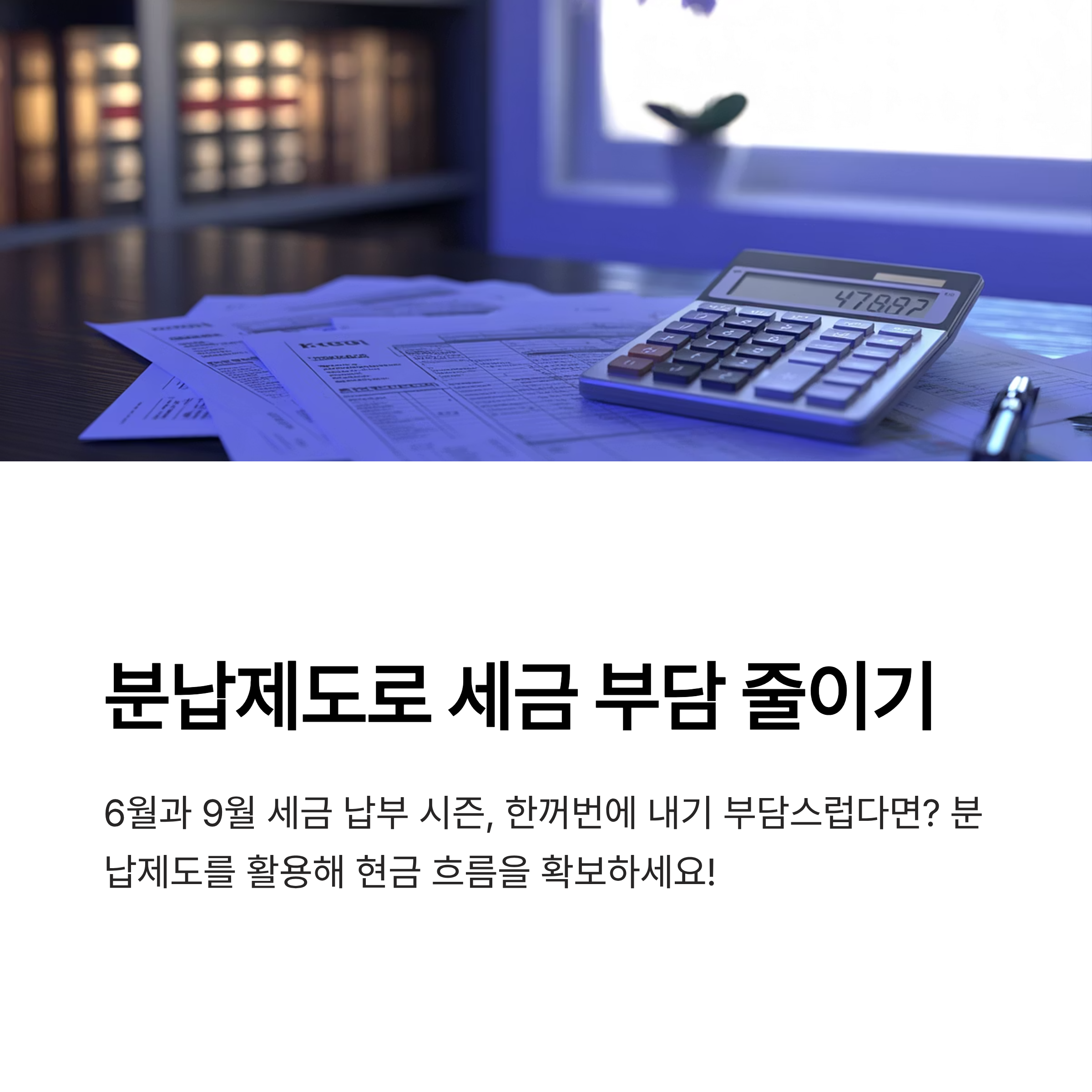 세금 납부는 예상과 계획이 생명이에요. 올해도 6월과 9월, 잊지 말고 분납으로 부담을 나누세요! 💰