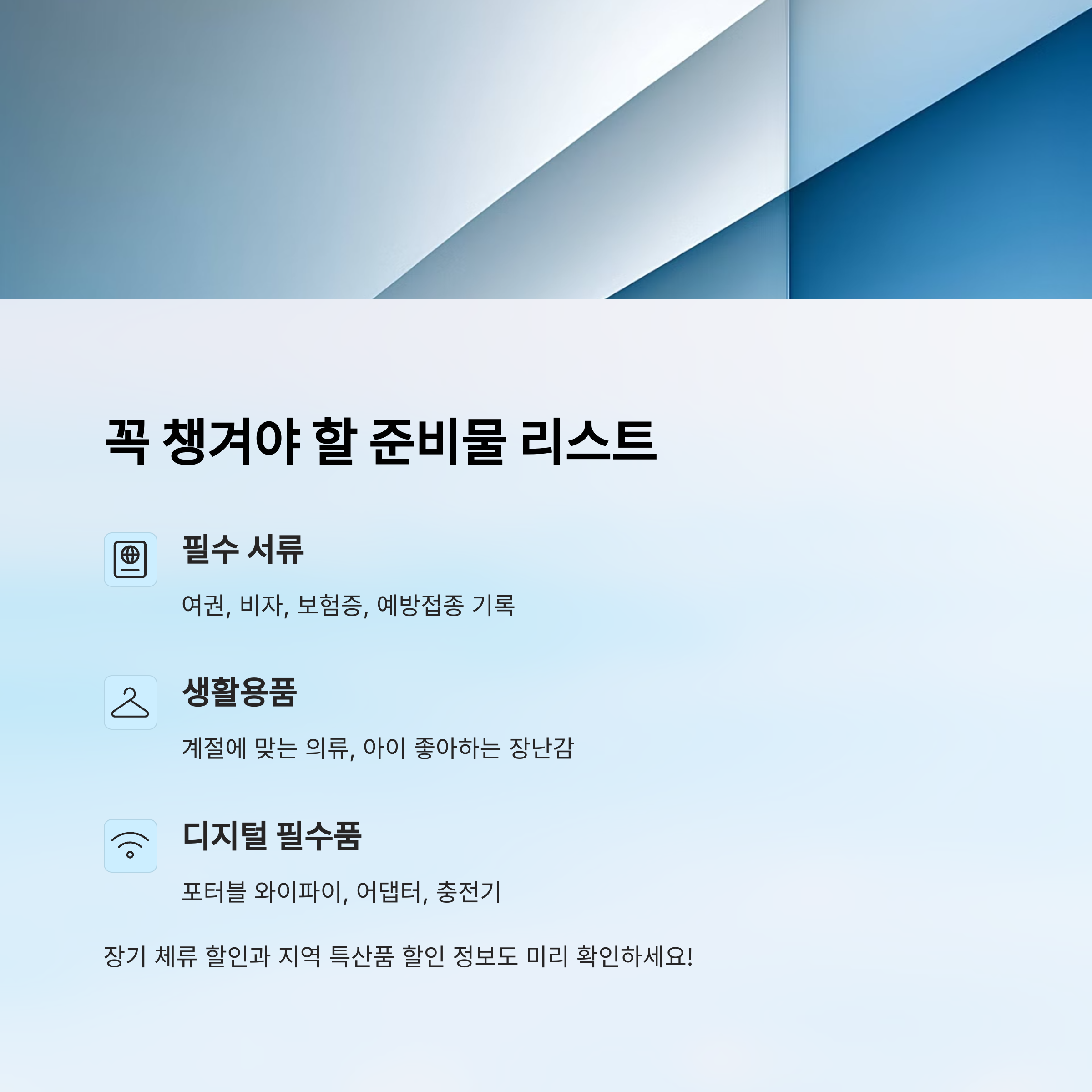 한 달 살기를 계획하고 있다면, 떠나기 전 체크리스트는 필수예요. 특히 아이와 함께라면 빠진 준비물 하나가 스트레스로 이어질 수 있답니다.