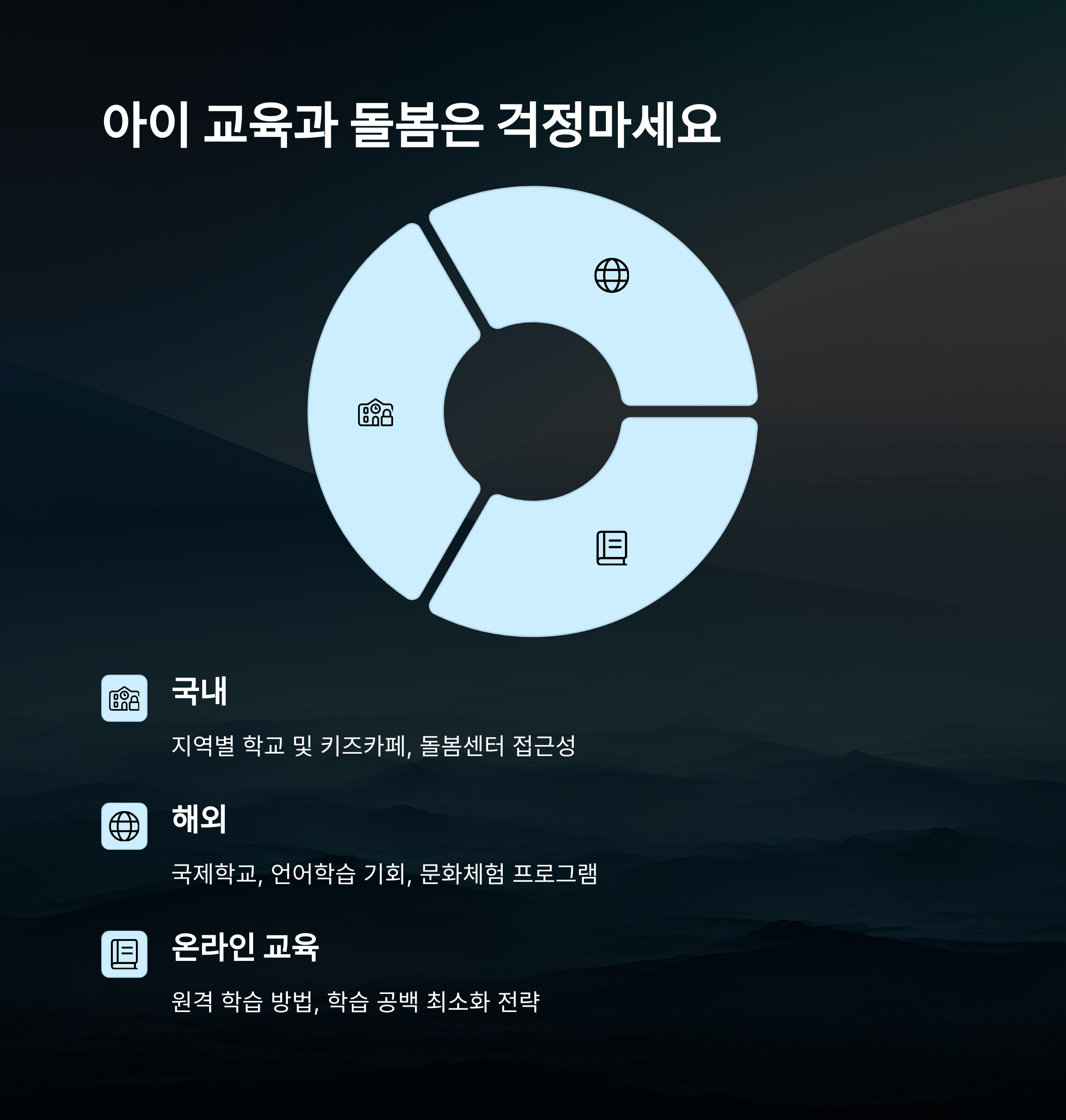 아이와 한 달 살기를 할 땐, 단순히 지내는 것보다 교육과 놀이, 그리고 안전하게 돌봄 받을 수 있는 환경이 중요해요. 각 지역마다 제공하는 인프라가 다르기 때문에 비교해보는 게 좋아요.