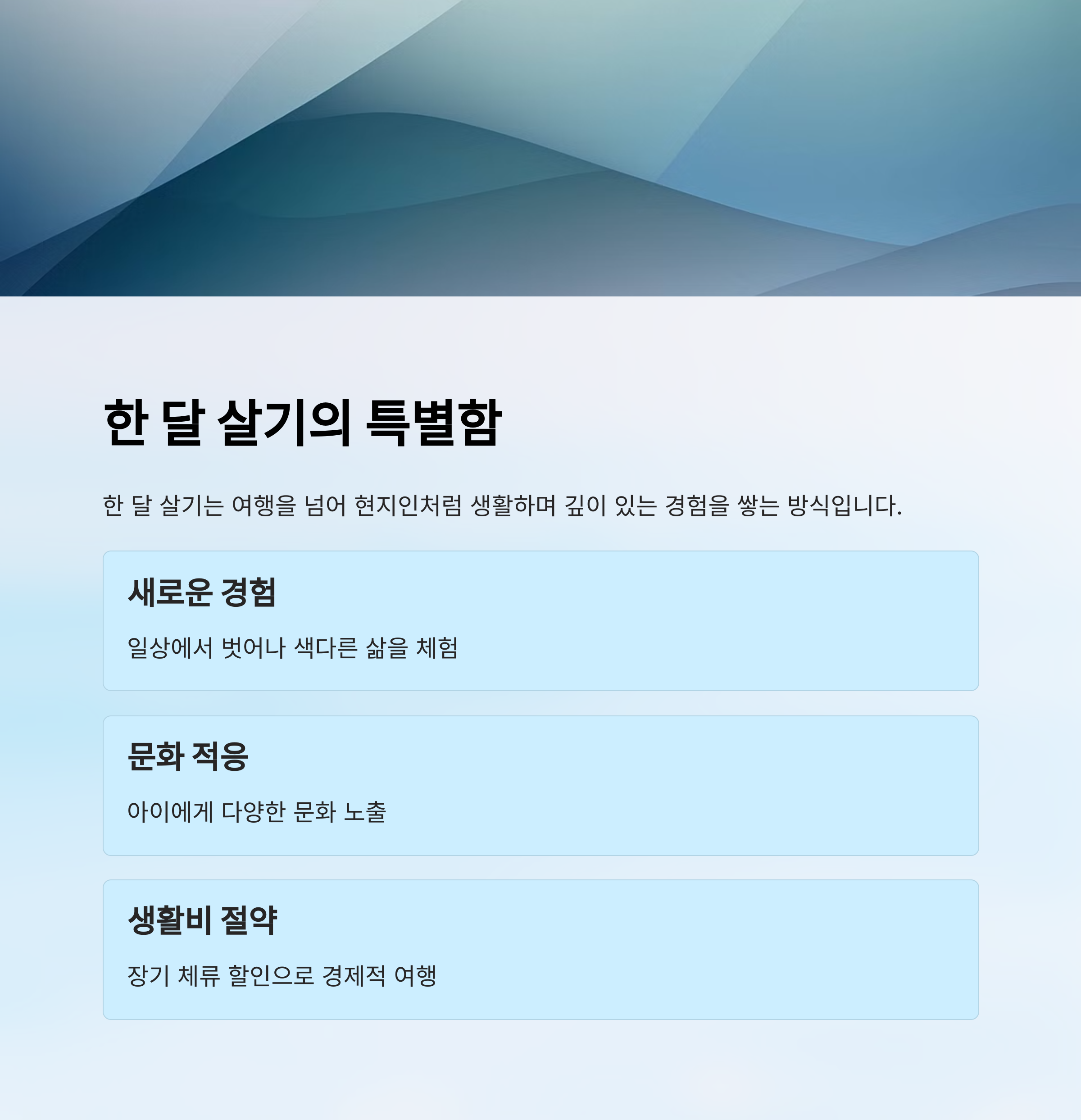 ‘한 달 살기’는 단순한 여행이 아니에요. 특정 지역에서 실제 생활하듯 머무르며, 그 지역의 문화와 환경을 깊이 체험하는 라이프스타일이에요. 특히 아이와 함께할 경우 교육적인 효과와 감성적 성장에 큰 도움이 되죠.