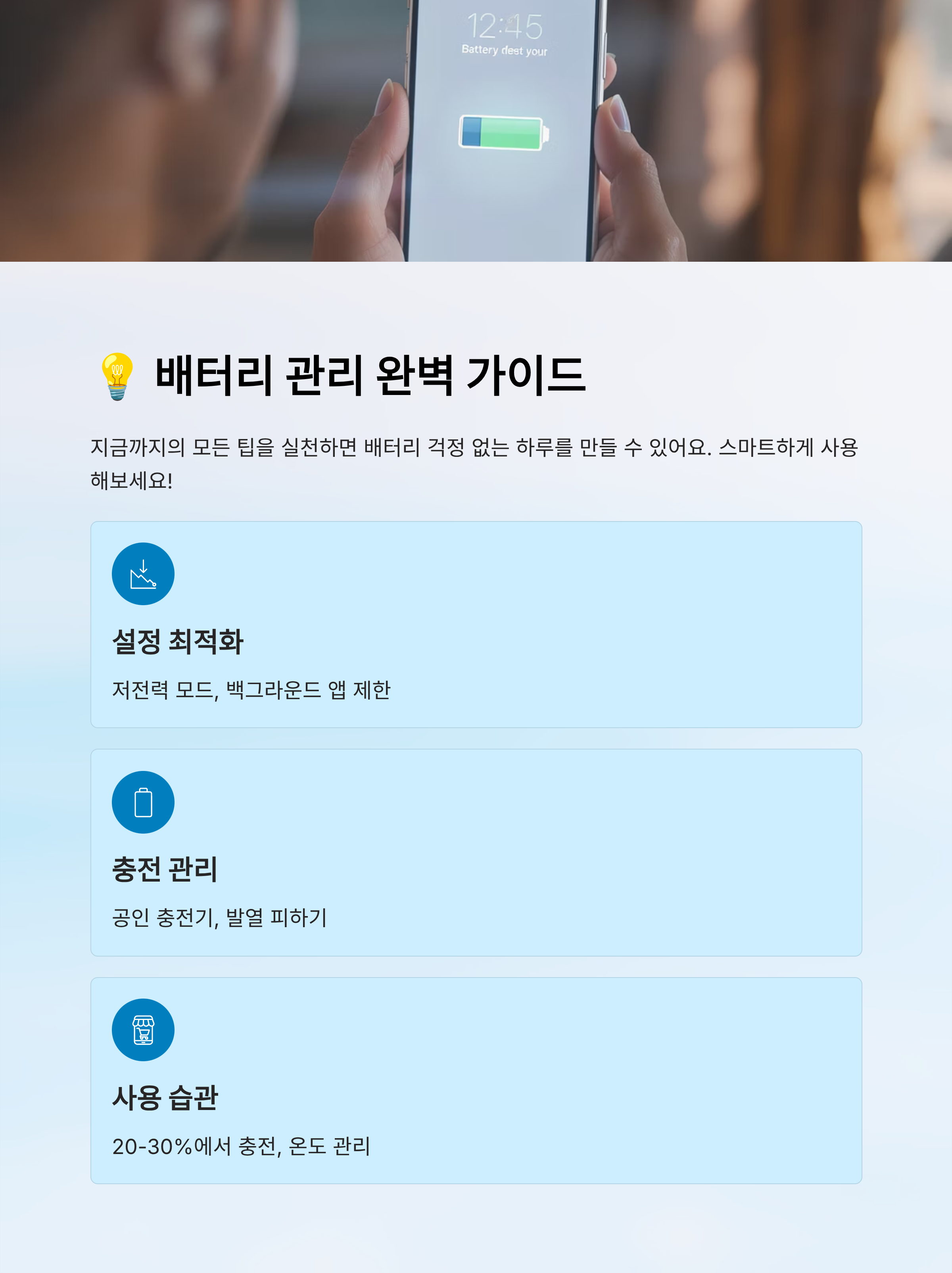하루 5분만 투자해서 이 내용들을 체크하면, 배터리 걱정 없는 하루를 만들 수 있어요. 특히 오래된 기기를 쓰고 있다면 더더욱 실천할 가치가 있답니다.