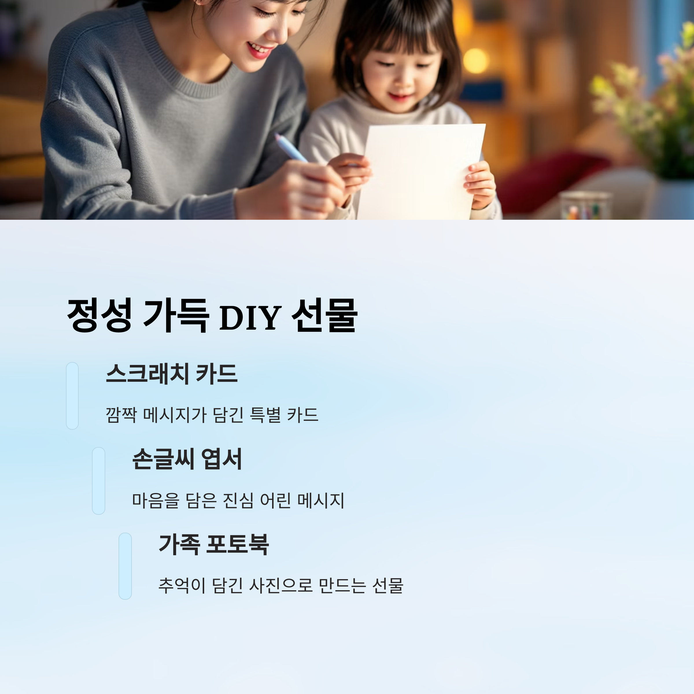 내 손으로 직접 만든 선물은 정성이 가득 담겨 있어서 더 특별하게 느껴져요. 아이에게 주는 선물뿐 아니라, 아이가 함께 만들면서 추억까지 남길 수 있는 DIY 선물 아이디어를 소개할게요.