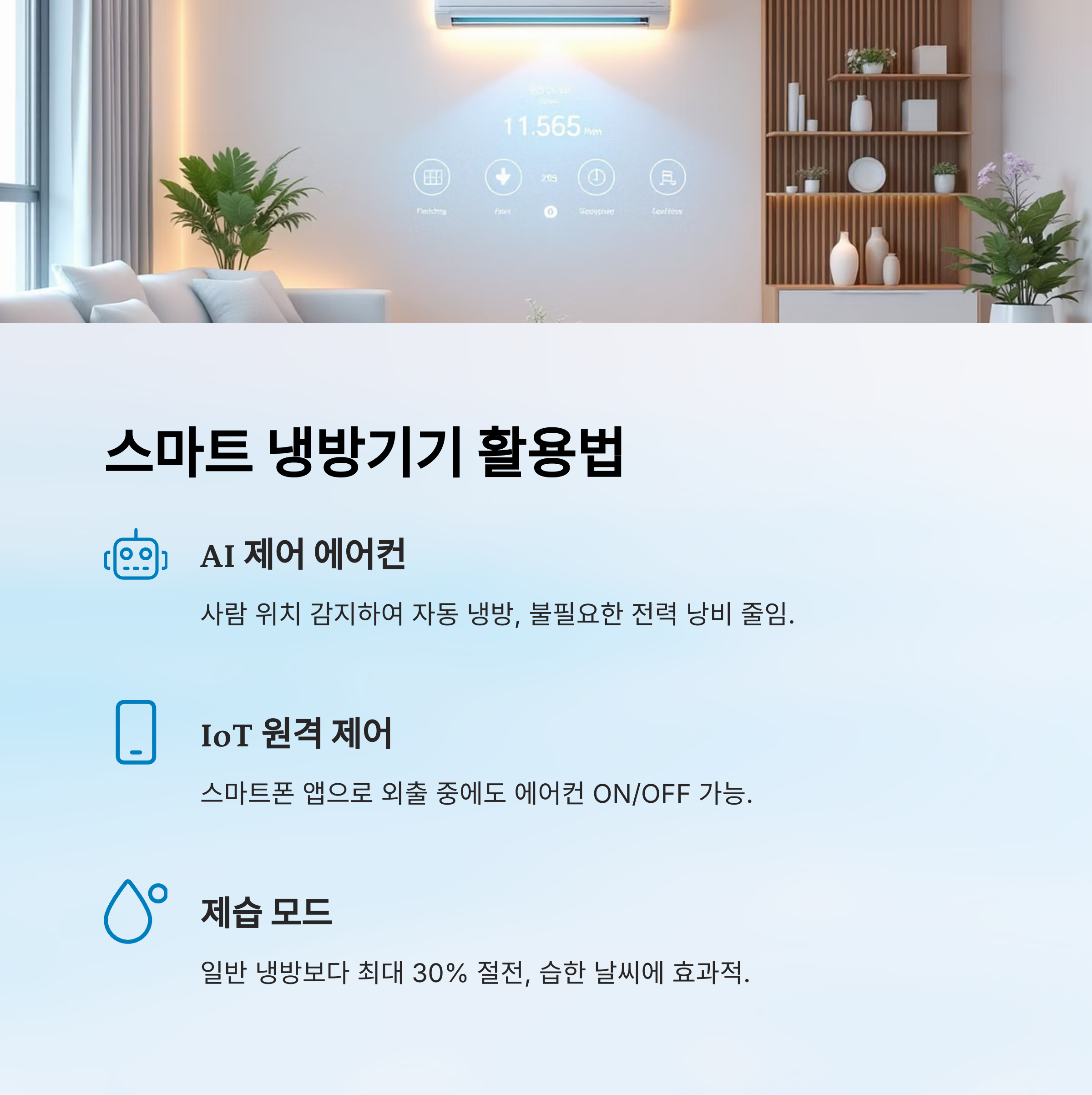 | AI 제어 에어컨 | 사람 위치 감지, 자동 냉방 | 전력 낭비 줄임 |