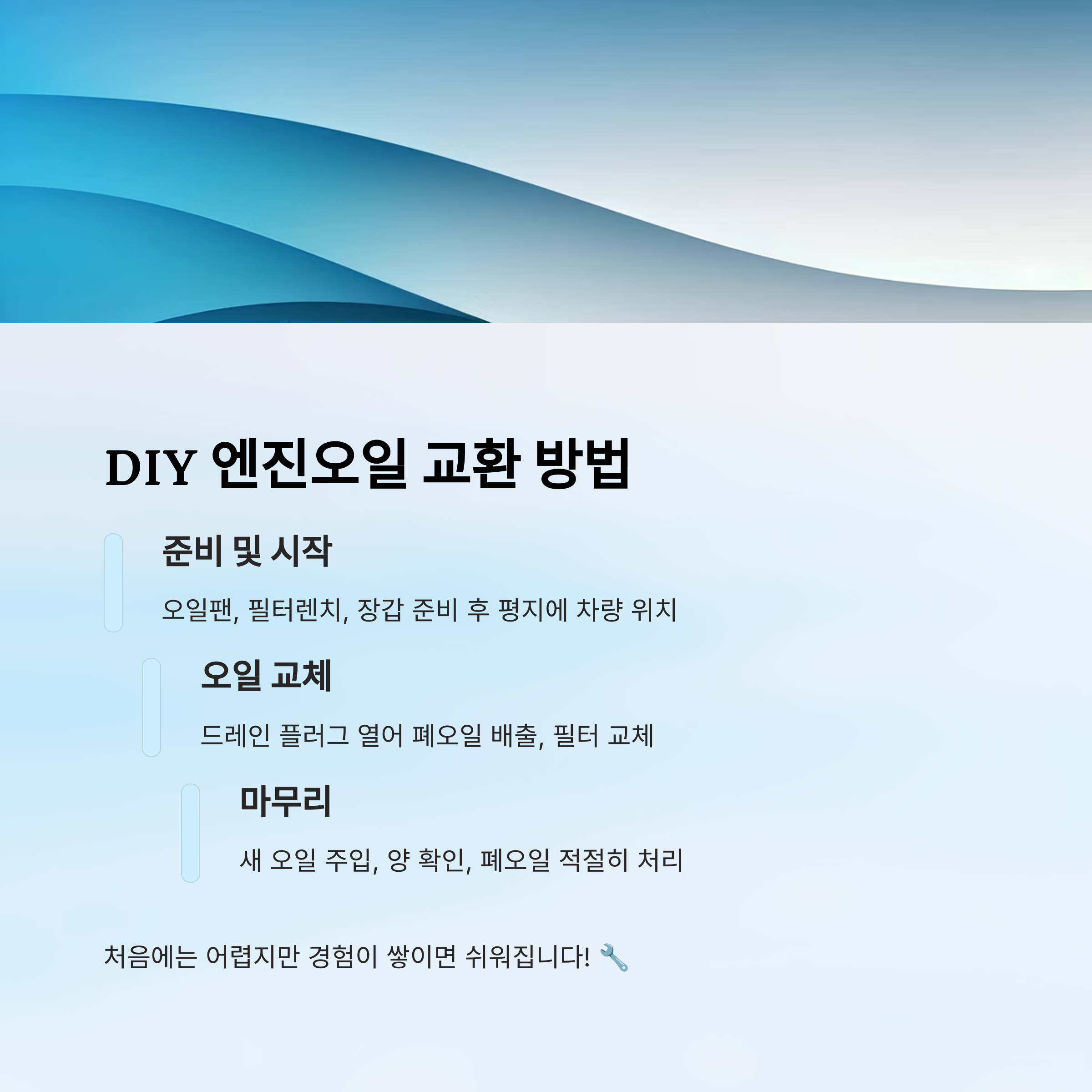 - 🔹 도구 구매 필요 – 오일팬, 렌치, 깔판 등이 필요함