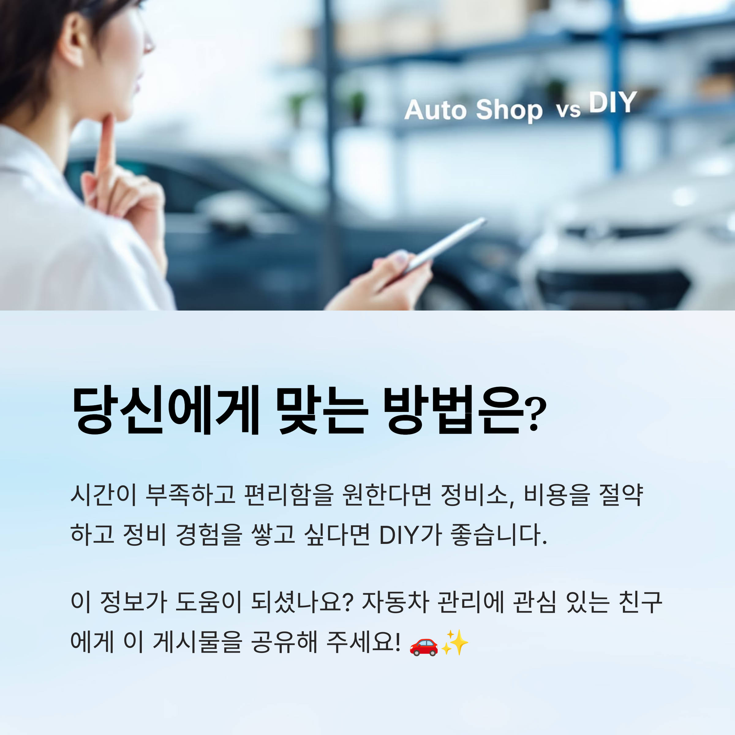 ⚖️ 정비소 vs DIY, 어떤 방법이 더 나을까?