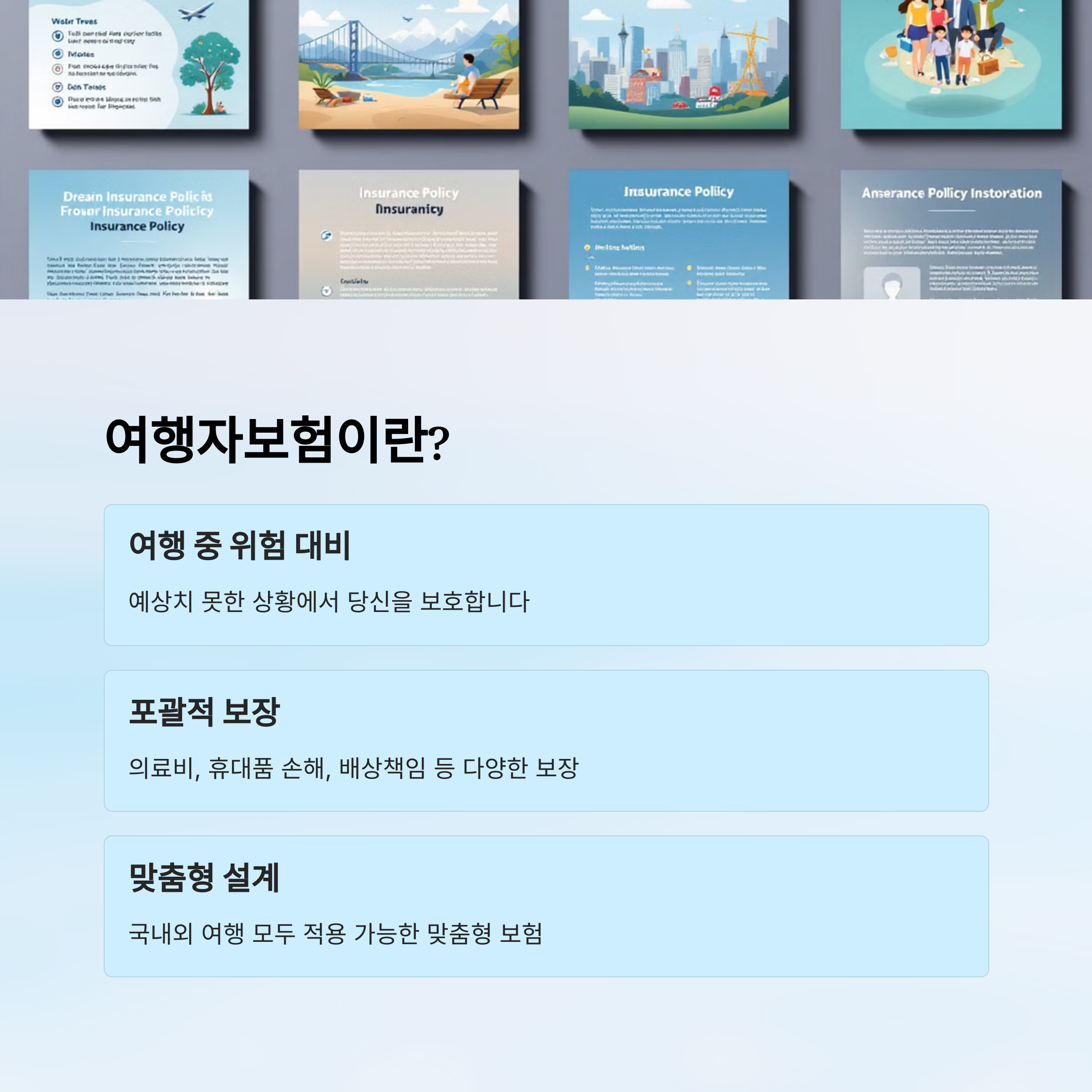 여행자보험은 해외나 국내 여행 중 발생할 수 있는 다양한 사고와 손해를 대비하기 위한 필수 보험이에요.