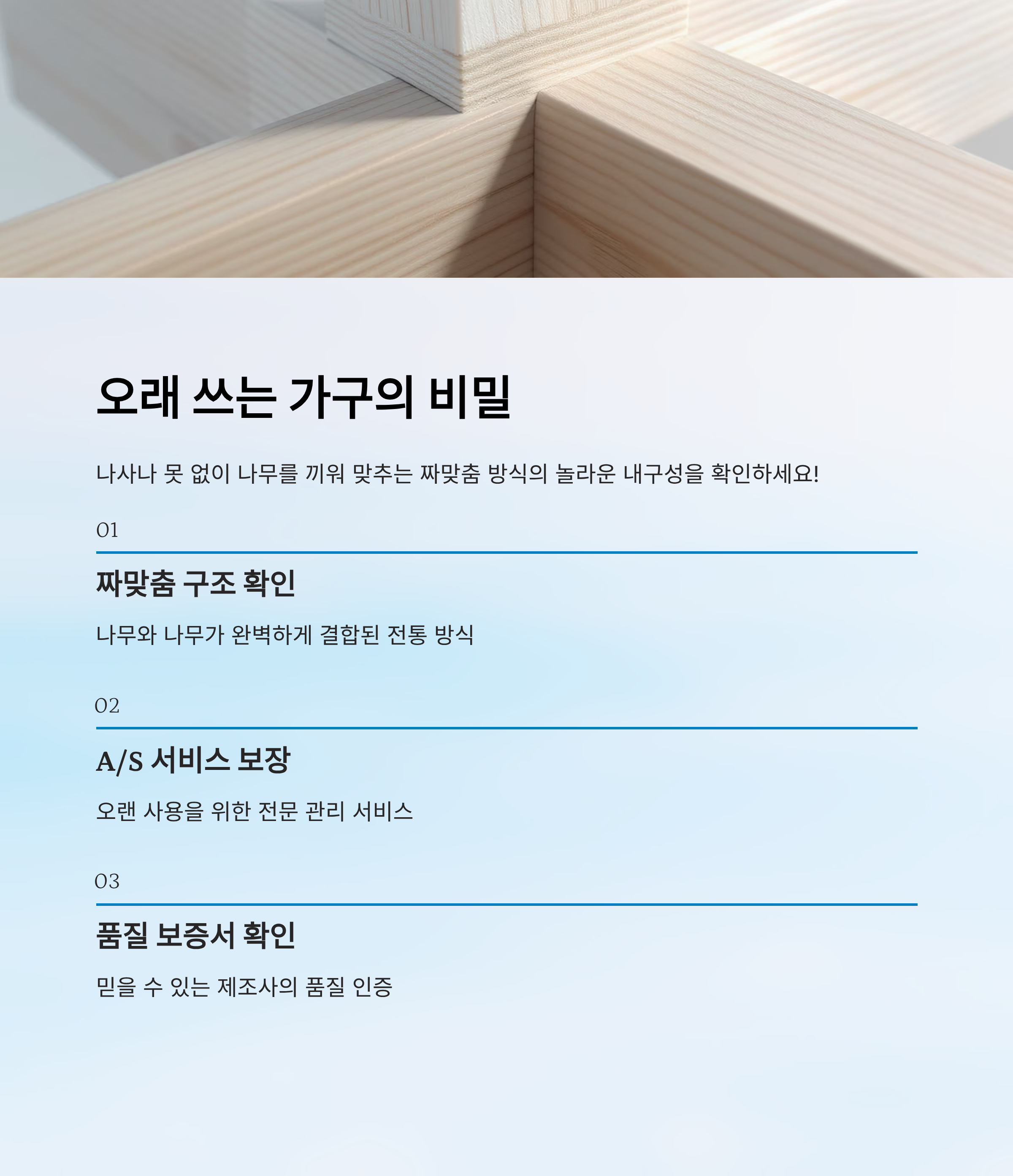 🚀 포인트 5: 튼튼한 '짜맞춤' 방식과 'AS'를 확인하세요