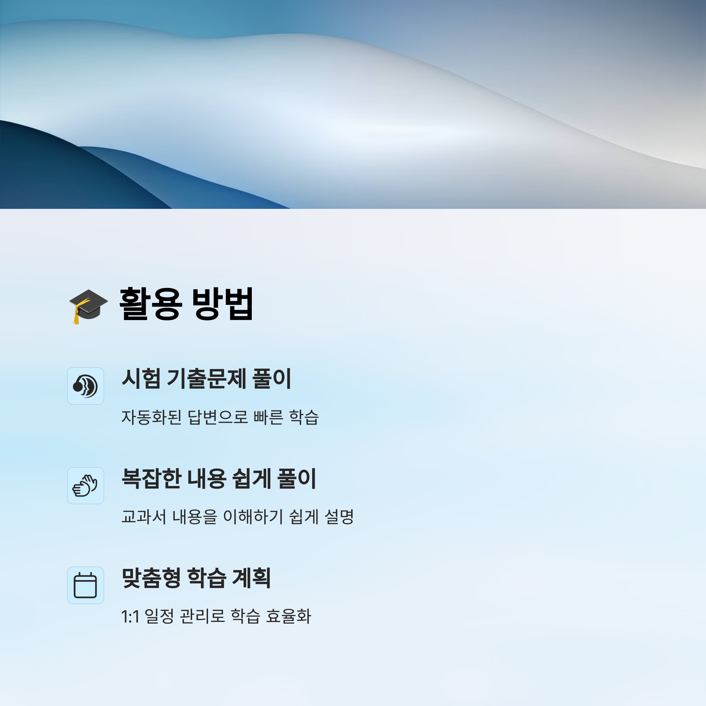 학생들에게 특히 유용한 이유는, 복잡한 정보도 간결하게 정리해주고, 궁금한 내용을 친절하게 설명해주기 때문이에요.