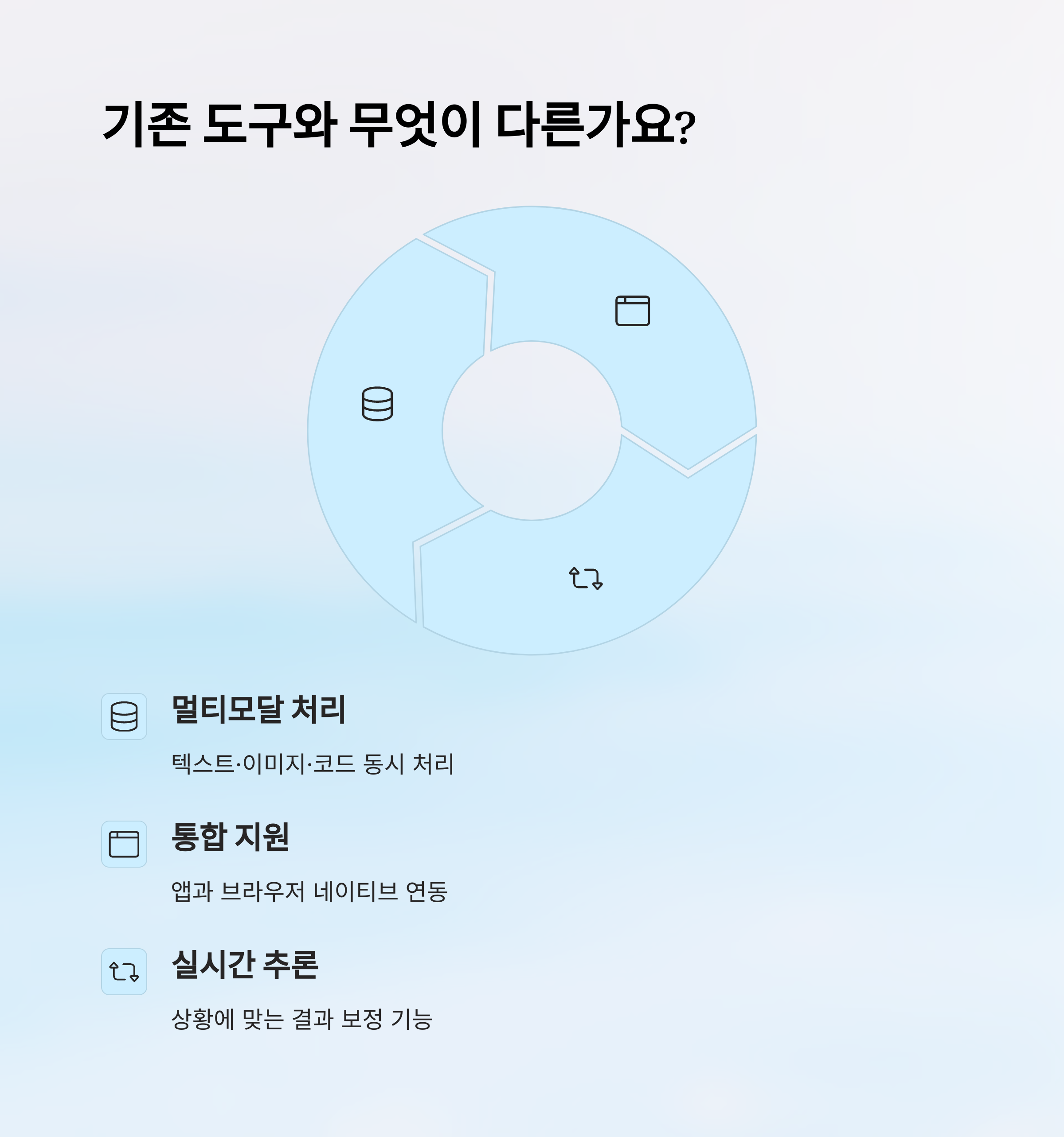 | 업무 자동화 | AI 비서처럼 통합 수행 | 부분적 자동화만 가능 |