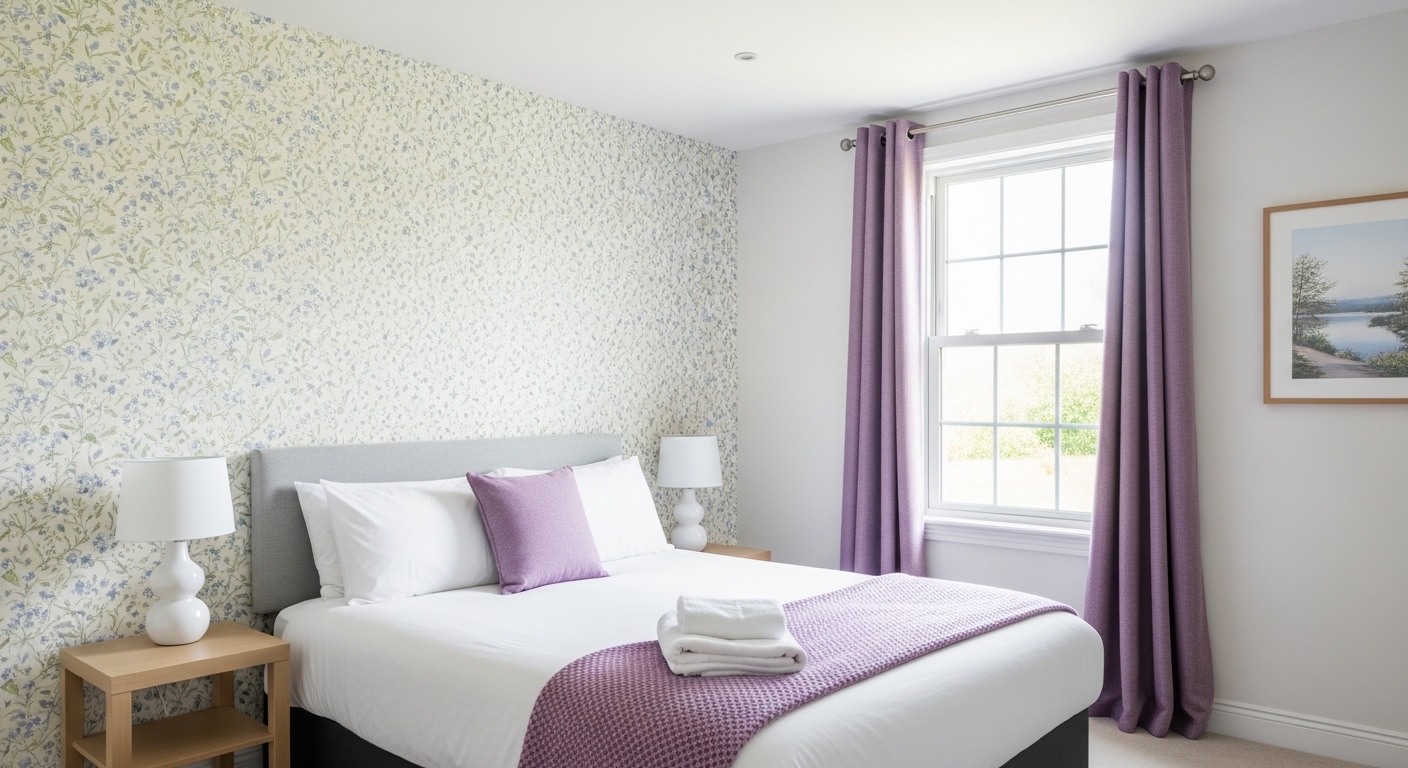 솔직히 온통 하얀 방은 조금 심심할 수 있잖아요? 그럴 때 필요한 게 바로 '퍼플'과 '옐로우'의 조화입니다. 보라색은 우아하고 깊이 있는 느낌을 주고, 노란색은 공간에 활력을 불어넣어 주죠. 이 두 색상을 쿠션이나 작은 소품에 활용하면 좁은 집도 잡지 화보처럼 세련되게 변신할 수 있어요.