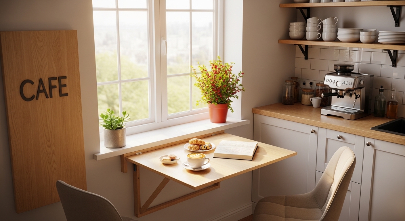 - 접이식 테이블: 식사 시간에만 펼쳐 공간 유연성 확보