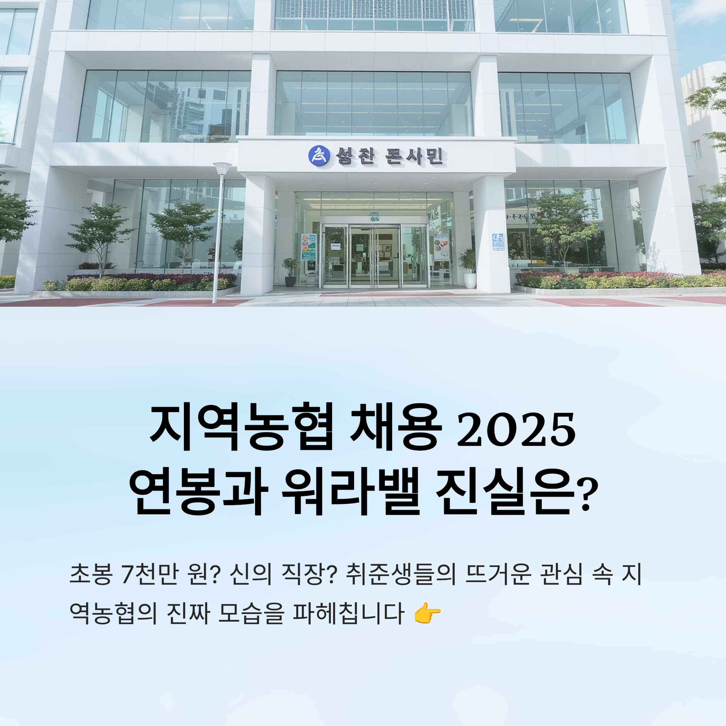 그런데 정말 그 정도로 연봉이 높은 걸까요? 또 일과 삶의 균형, 즉 워라밸은 실제로 어떤지 궁금하신 분들 많을 거예요. 오늘은 이 화제의 중심인 ‘지역농협’ 채용 정보를 현실적으로 파헤쳐볼게요!