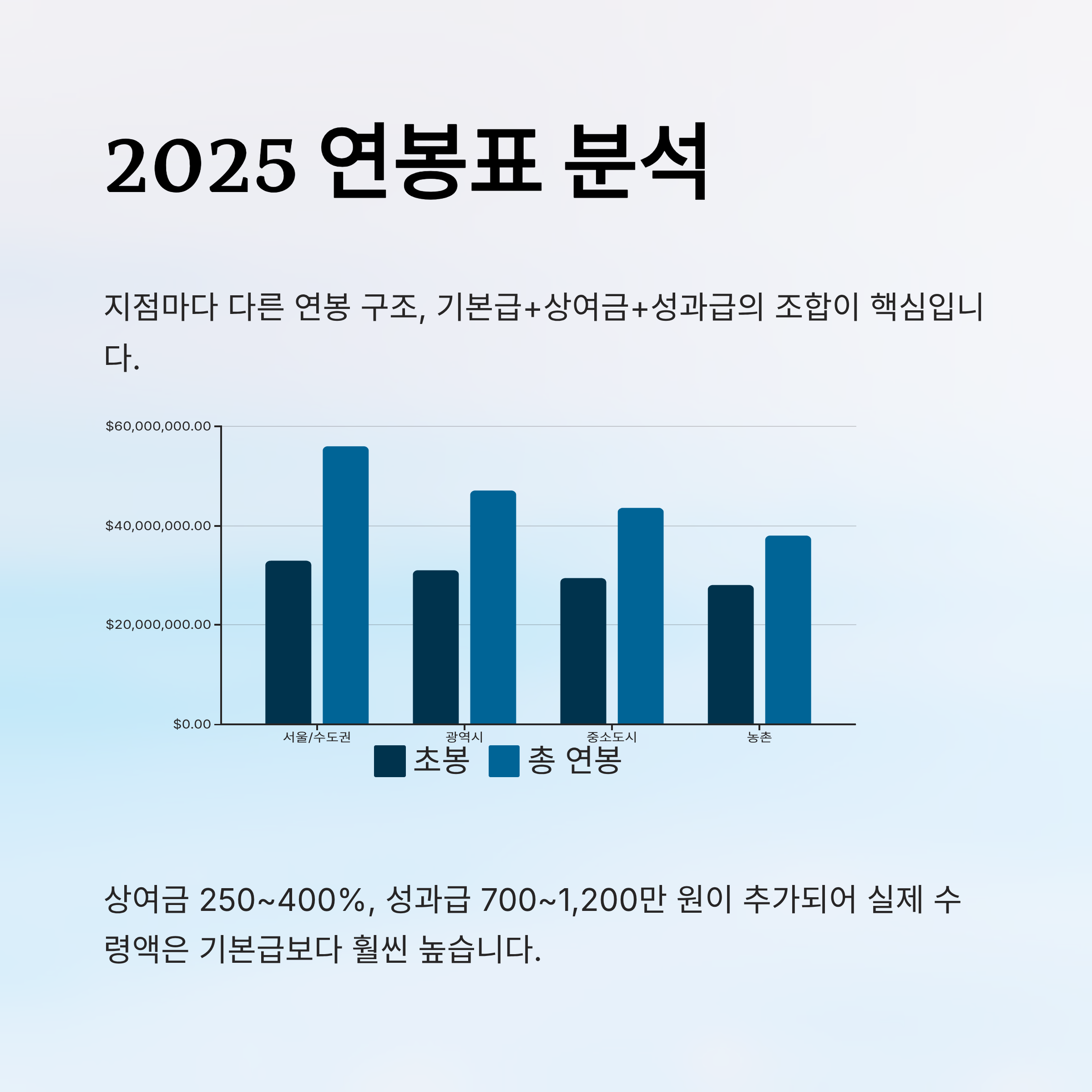 | 지점 유형 | 초봉 (기본급) | 상여금 비율 | 성과급 평균 | 연봉 총합 (1년 차) |