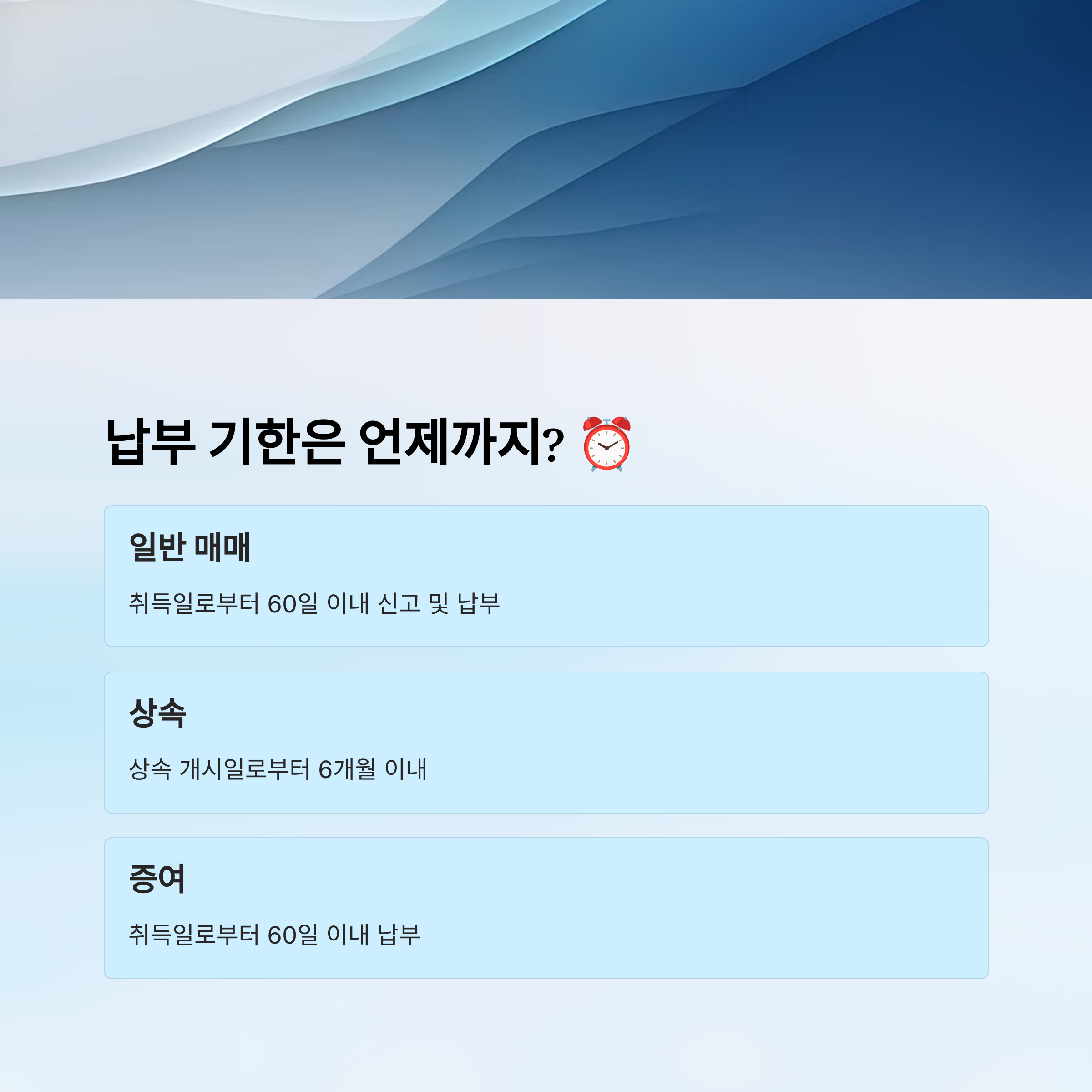 | 일반 매매 | 취득일로부터 60일 이내 | 기한 초과 시 가산세 부과 |
