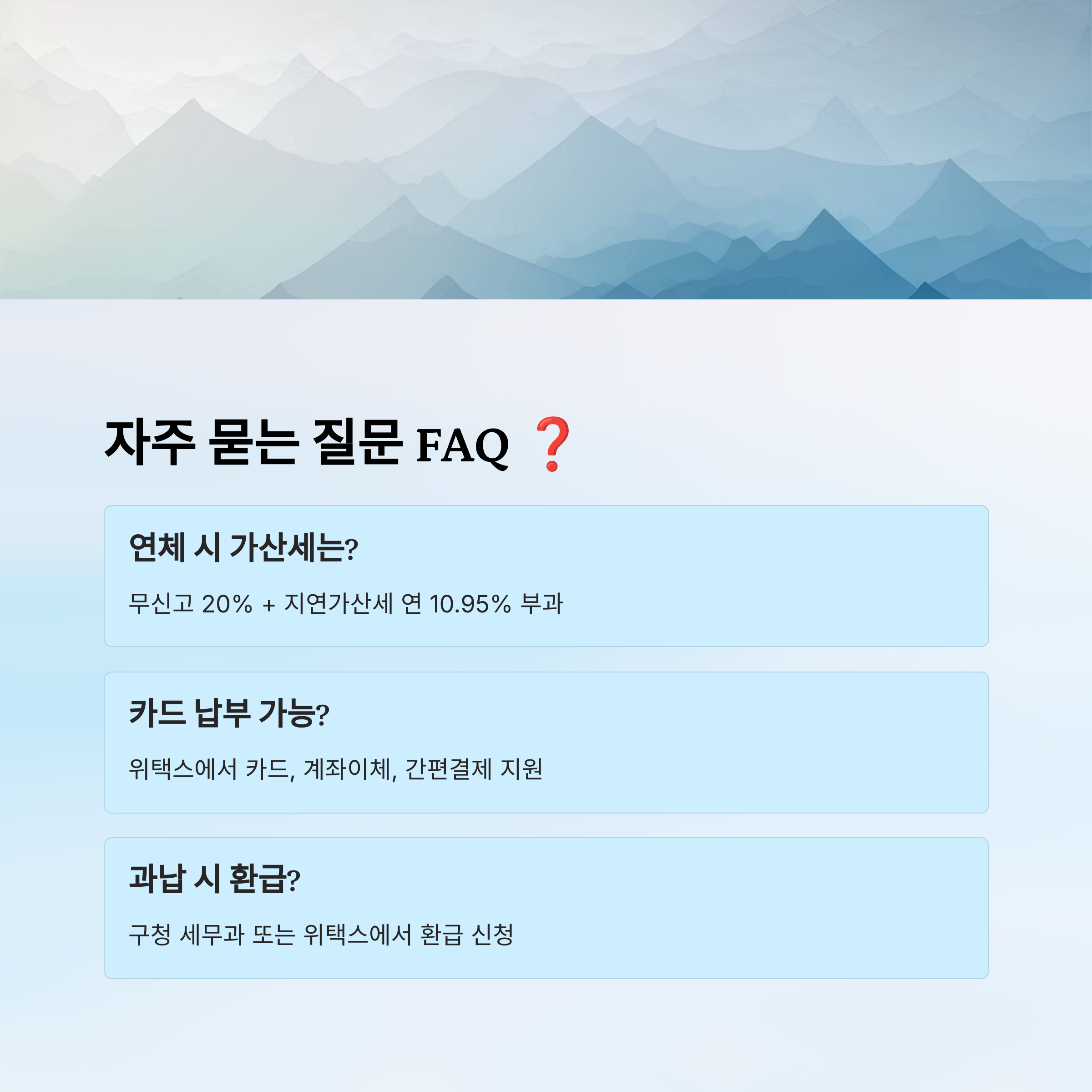 | 카드 납부 수수료 | 1~1.5% 수수료 발생 |