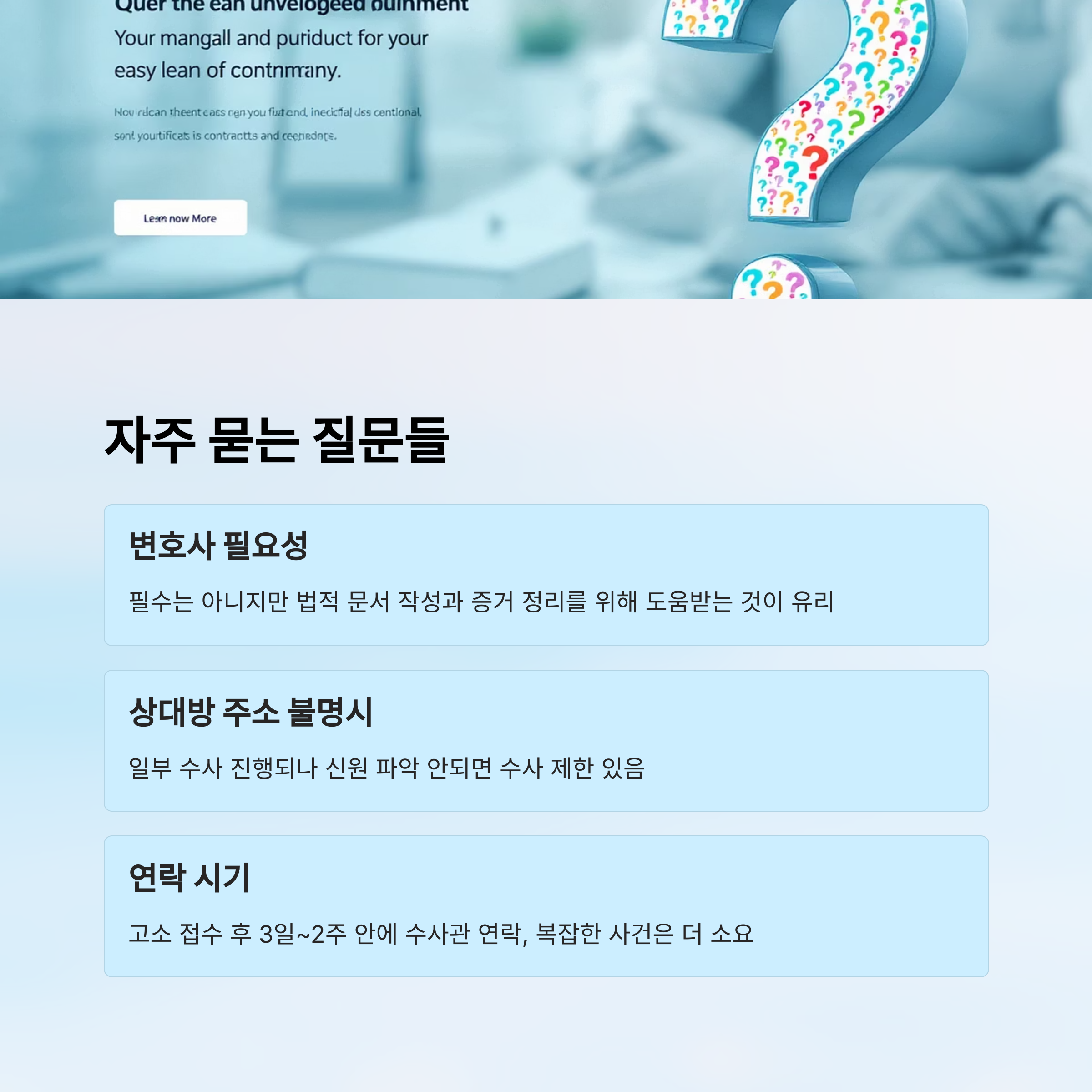 A3. 보통 고소 접수 후 3일~2주 안에 수사관에게 연락이 와요. 복잡한 사건은 시간이 더 걸릴 수 있어요.