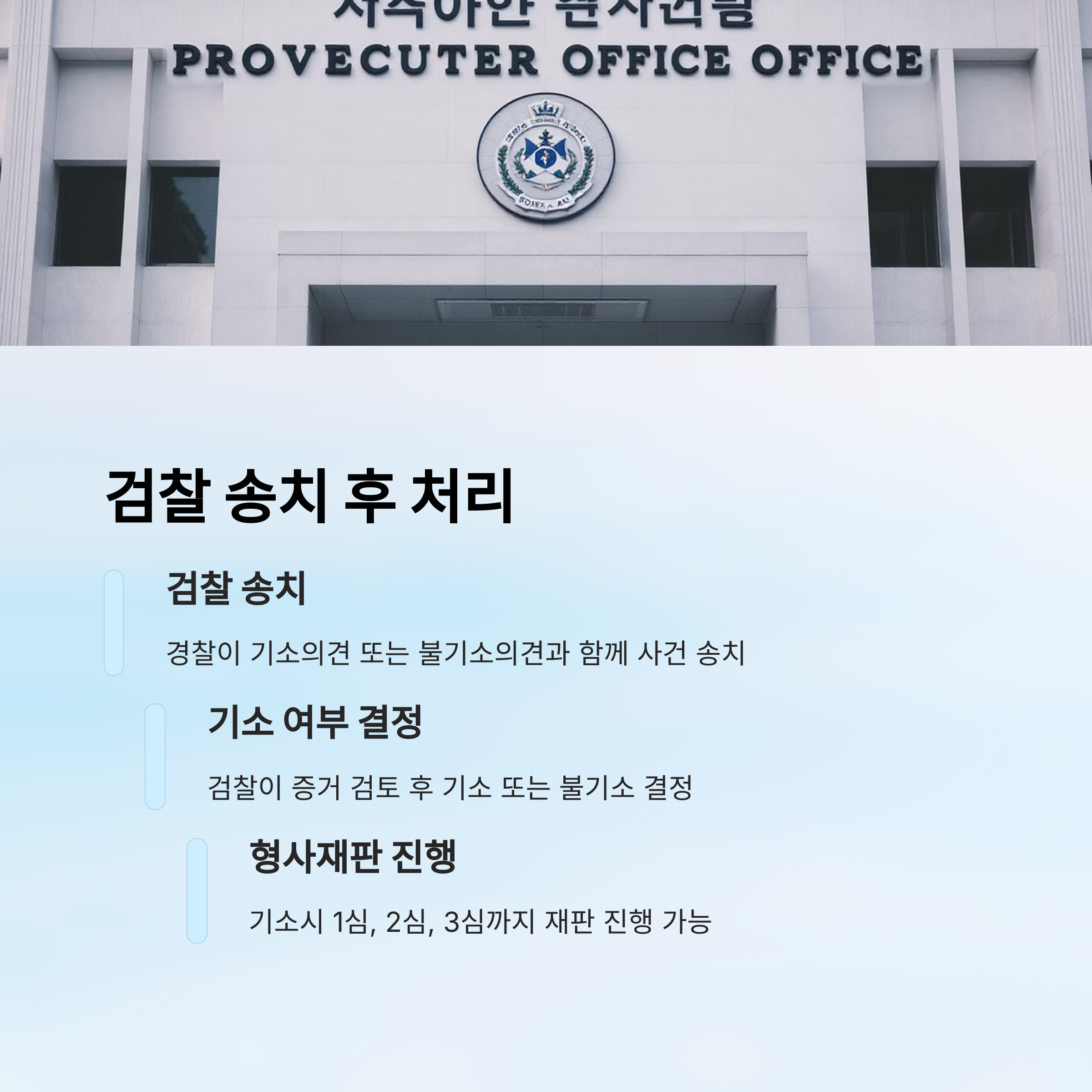 수사가 완료되면 경찰은 사건을 검찰에 송치해요. 이때는 ‘기소의견’과 ‘불기소의견’으로 나뉘어 의견서를 함께 제출하게 돼요. 검찰은 이를 검토한 뒤 기소 여부를 결정하는데, 증거가 부족하거나 혐의가 약하면 기소하지 않을 수도 있어요.