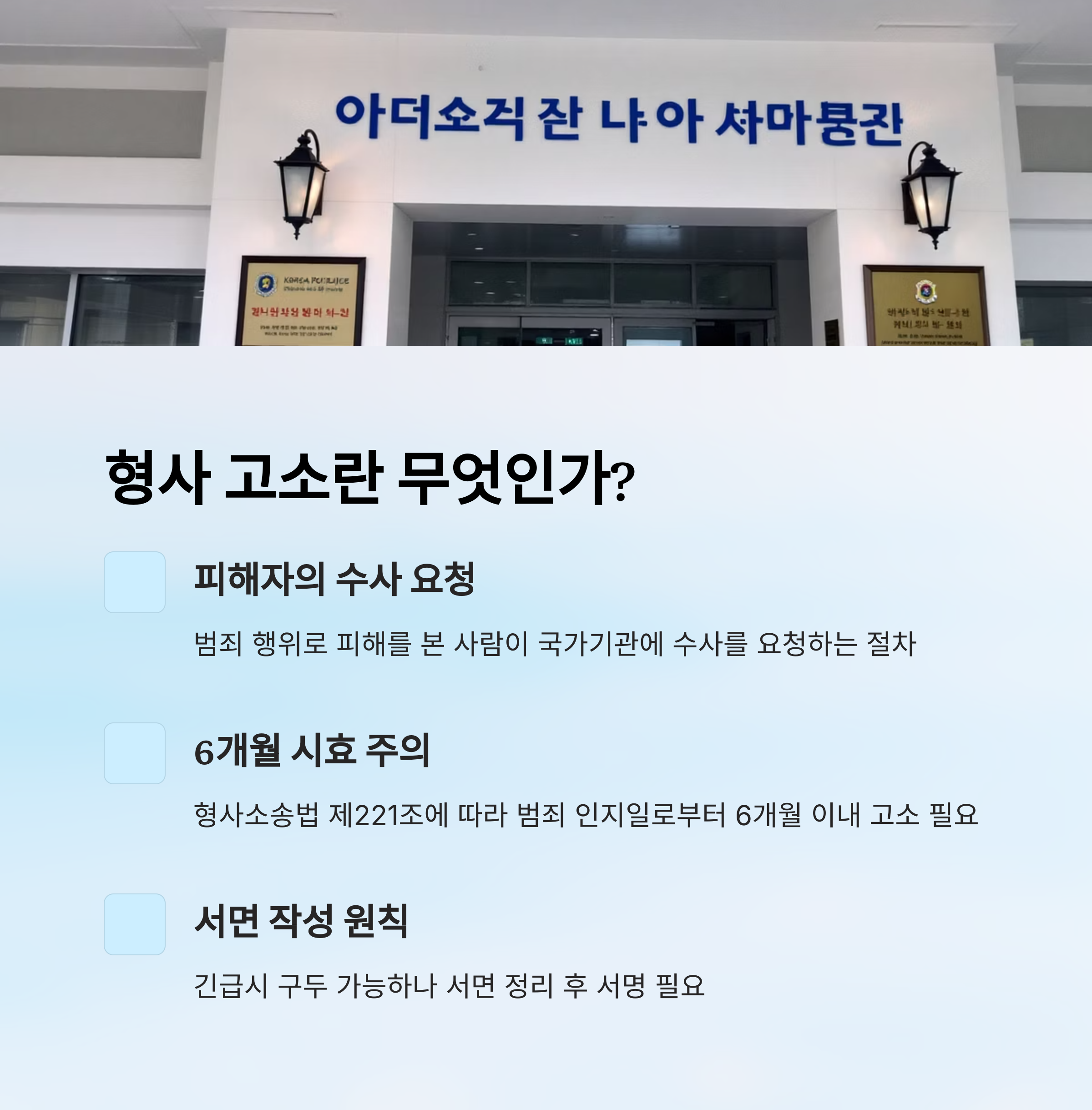 내가 생각했을 때 형사 고소는 단순한 신고가 아니라 법적 절차의 첫걸음이라 준비가 꼭 필요하다고 봐요. 증거 자료 확보, 고소장 작성, 경찰 또는 검찰에 제출까지 여러 단계가 있기 때문에 꼼꼼한 준비가 중요하답니다.