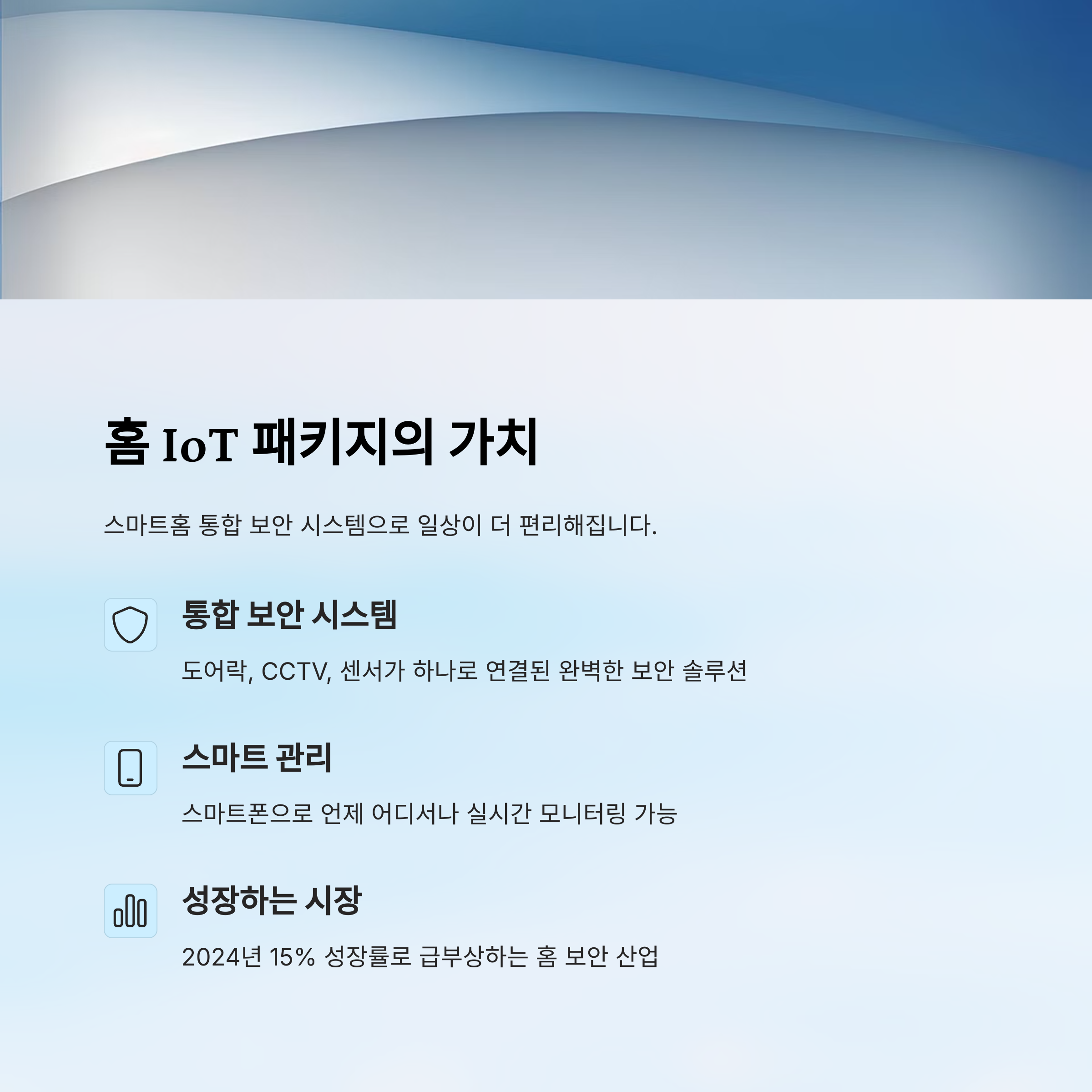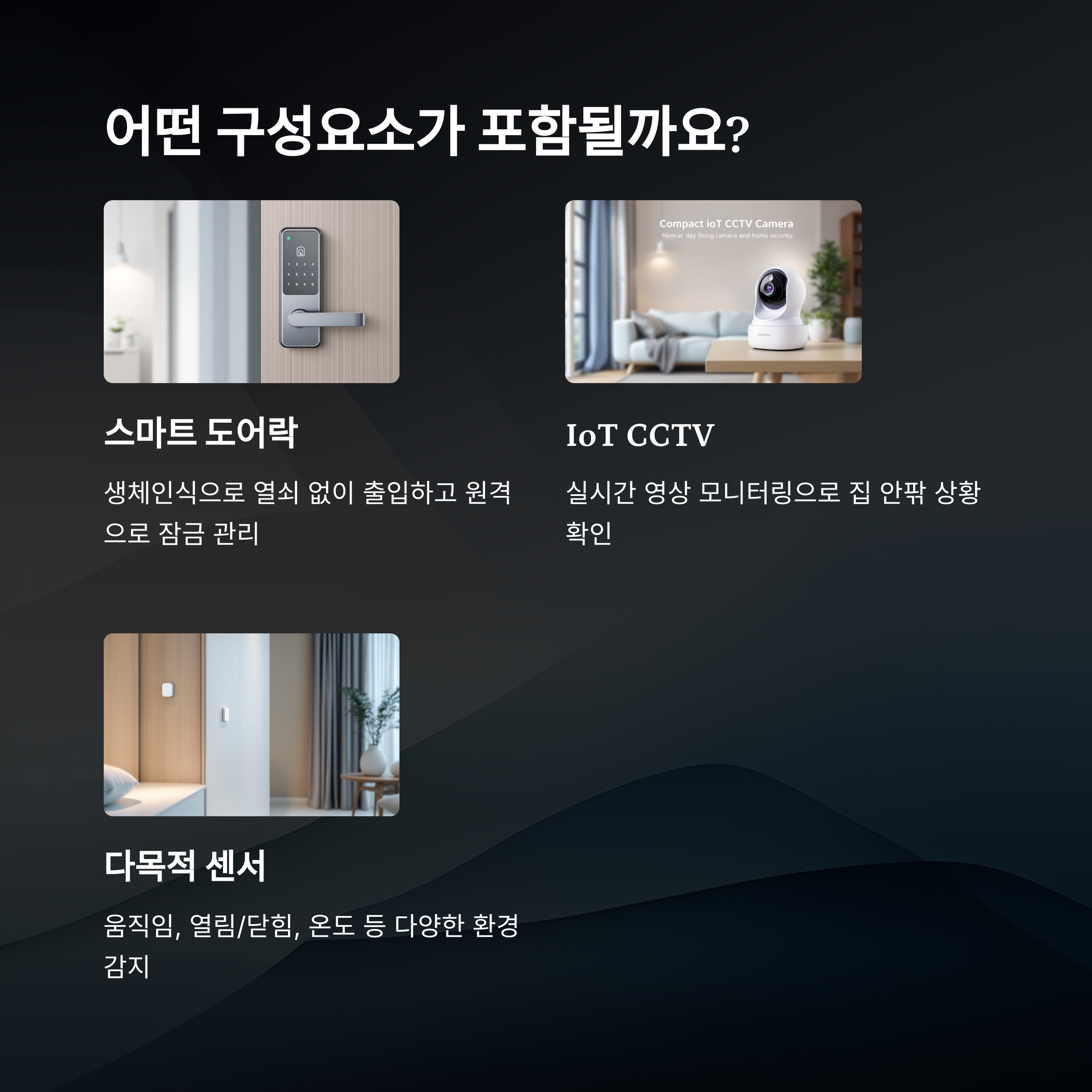 이 패키지들은 스마트폰 앱 하나로 제어할 수 있어서, 외출 중에도 문을 잠그거나 CCTV를 확인할 수 있고, 센서 감지 시 즉각 알림도 받을 수 있어요. 완전히 새로운 생활 방식이죠!