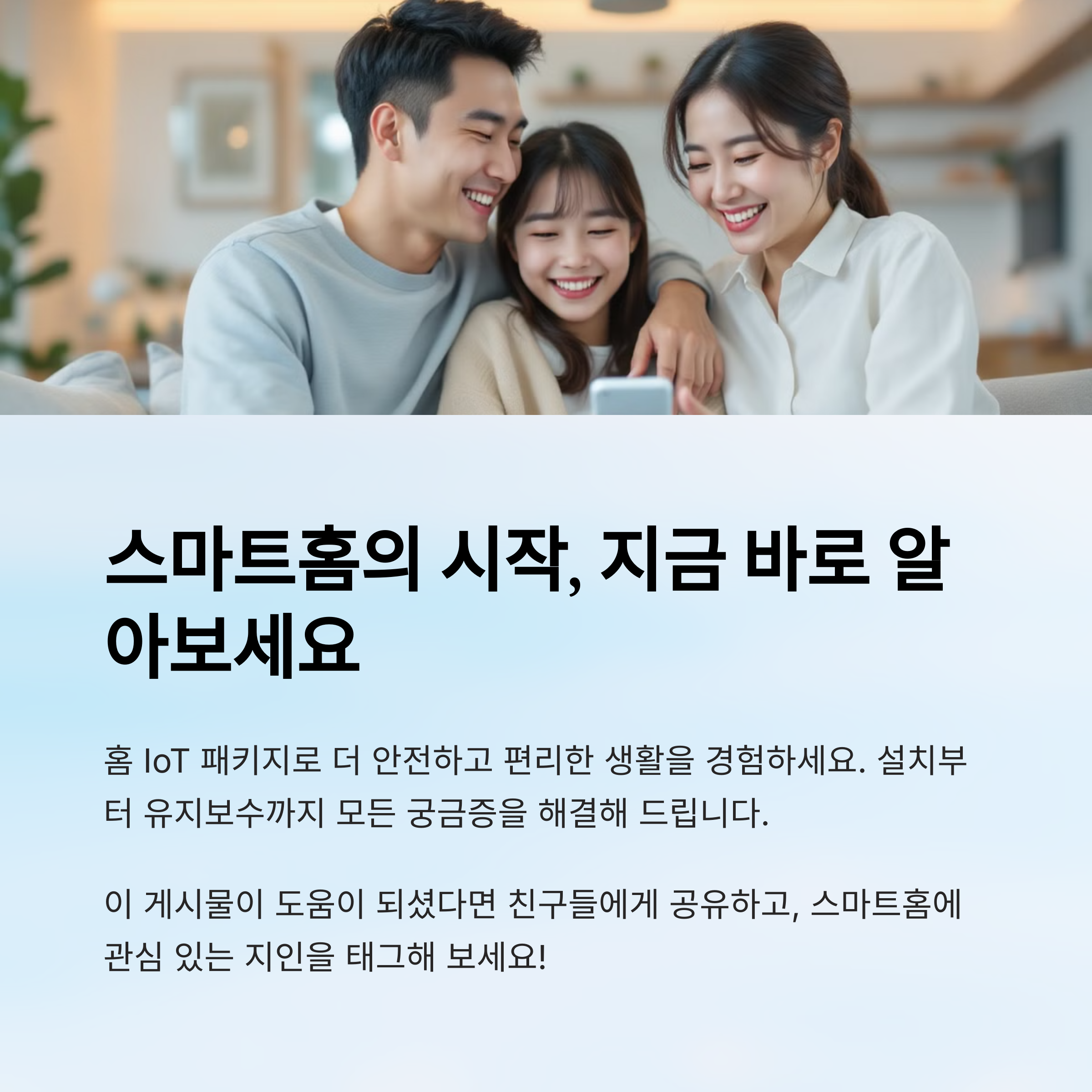 홈 IoT 패키지를 구성할 때 가장 중요한 건 ‘모든 기기가 한 앱에서 작동하느냐’예요. 통합 연동이 돼야 진짜 스마트홈이에요 📲