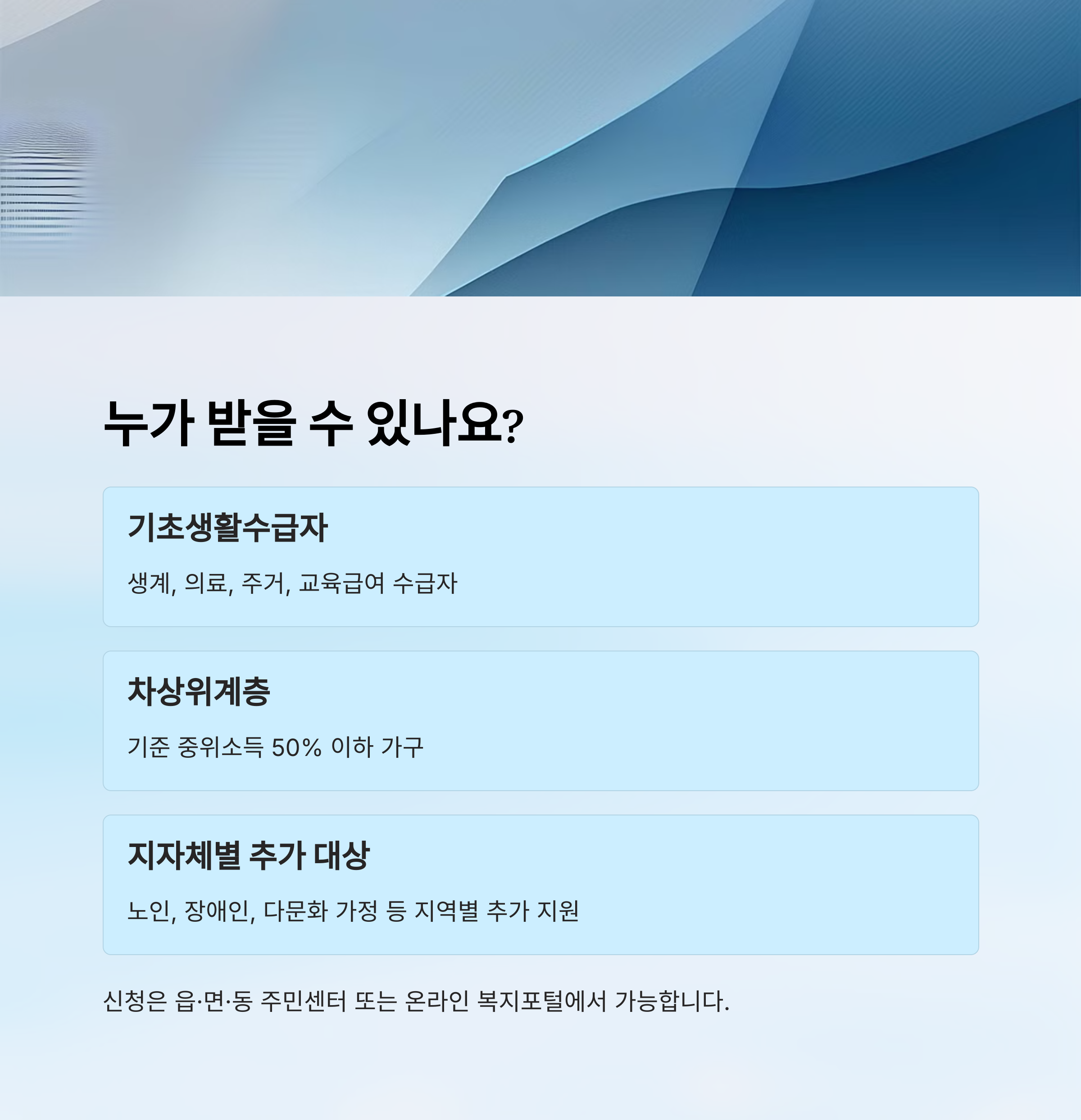 | 신청 장소 | 읍·면·동 주민센터, 복지포털 |