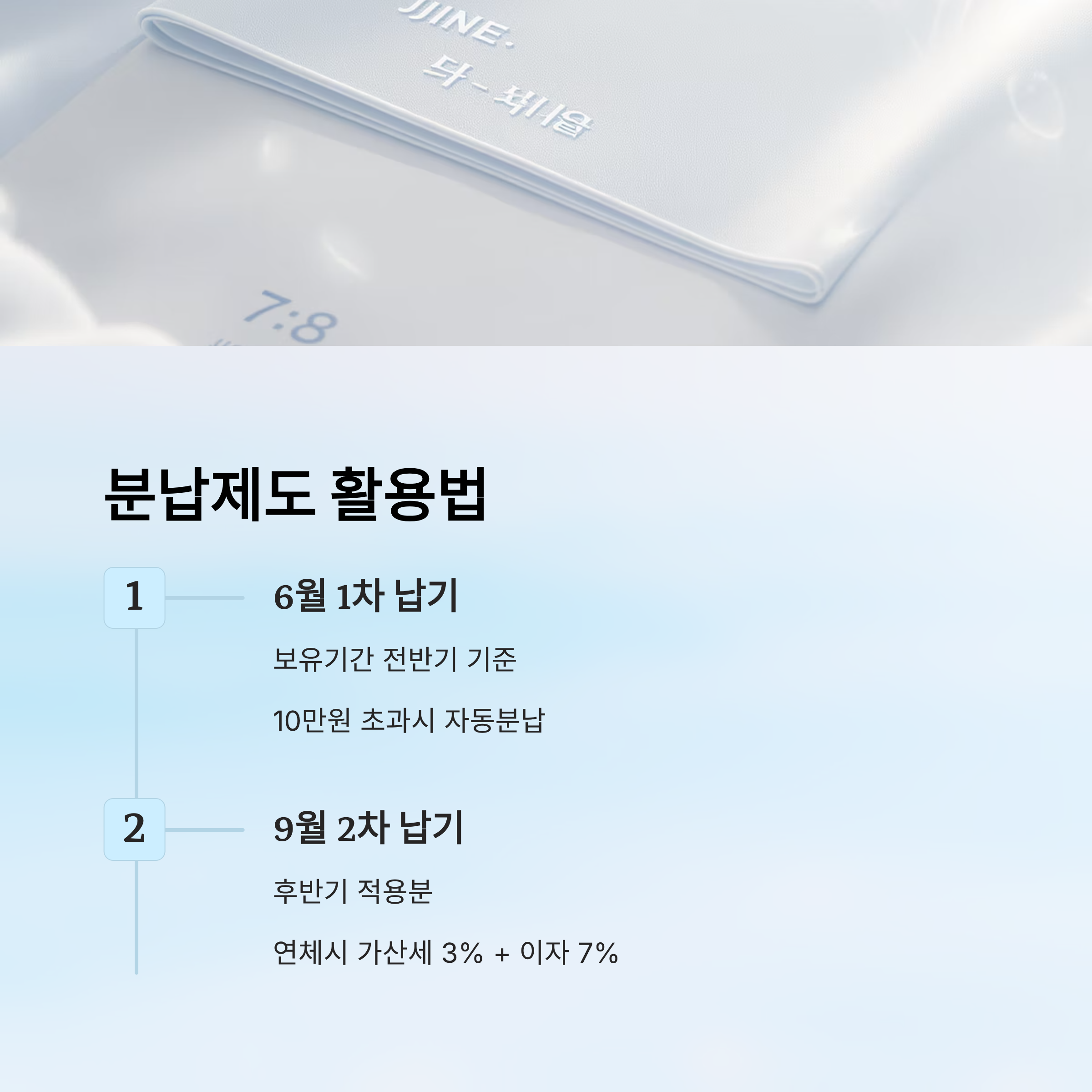6월은 재산세의 1차 납기이고, 9월은 2차 납기로 설정돼 있어요. 보통 10만 원 초과 금액부터 자동으로 분납 대상이 되며, 미리 신청하지 않아도 금액 기준을 충족하면 고지서가 2장으로 나뉘어 발송된답니다.