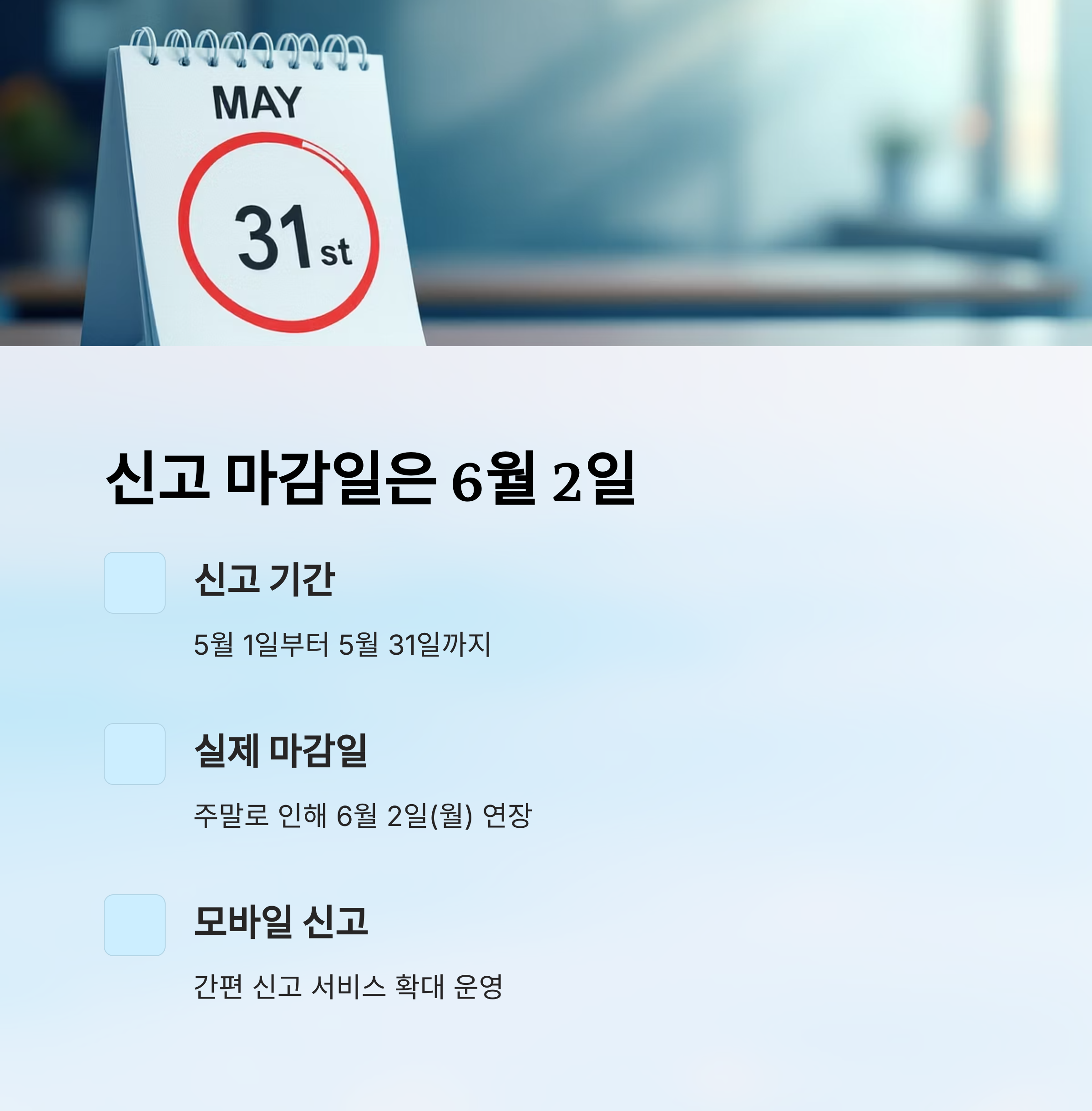 | 신고 마감일 | 2025년 6월 2일 (월) |