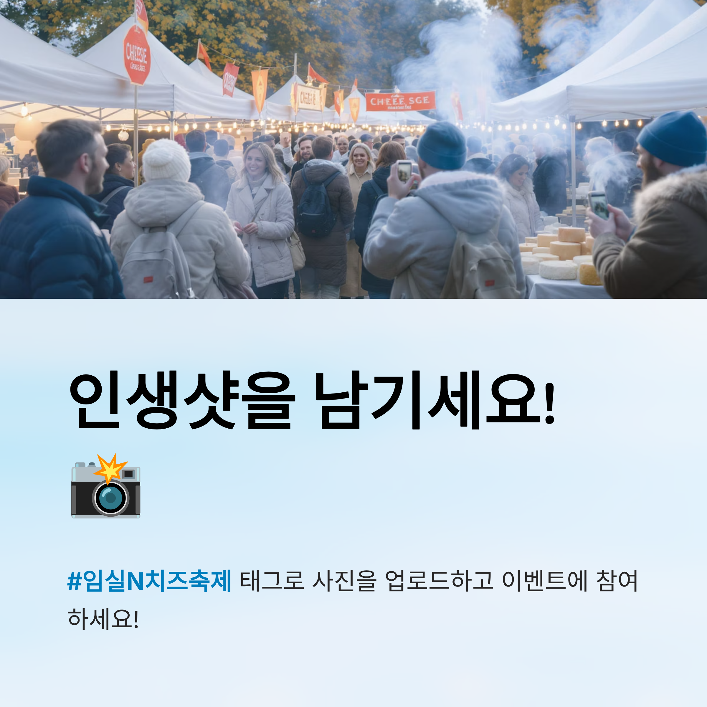 A6. #임실N치즈축제 태그로 사진 업로드하면 자동 참여돼요. 운영부스에서 추가 경품 응모도 가능해요.