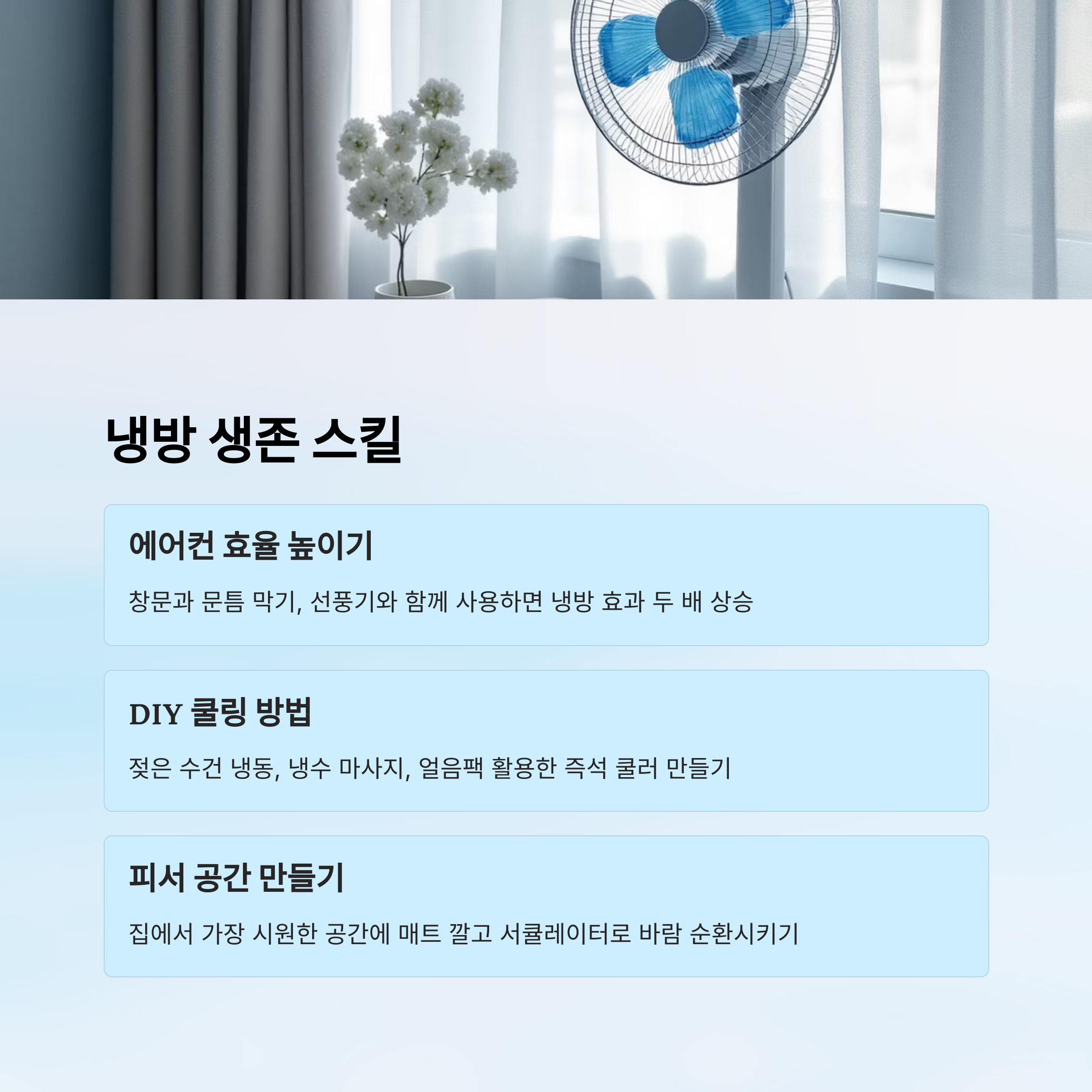 | 선풍기 | ★★☆☆☆ | 낮음 | 얼음병 활용 |