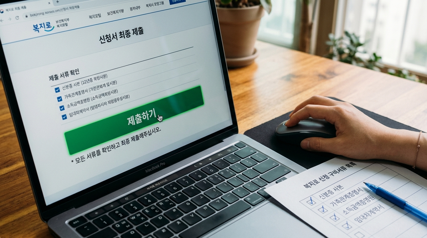 신청은 온라인(복지로) 또는 오프라인(주민센터) 모두 가능합니다. 요즘 같은 디지털 시대엔 집에서 편하게 온라인으로 신청하는 게 최고죠! 복지로 홈페이지에 접속해서 '복지서비스 신청' 메뉴를 이용하면 됩니다.