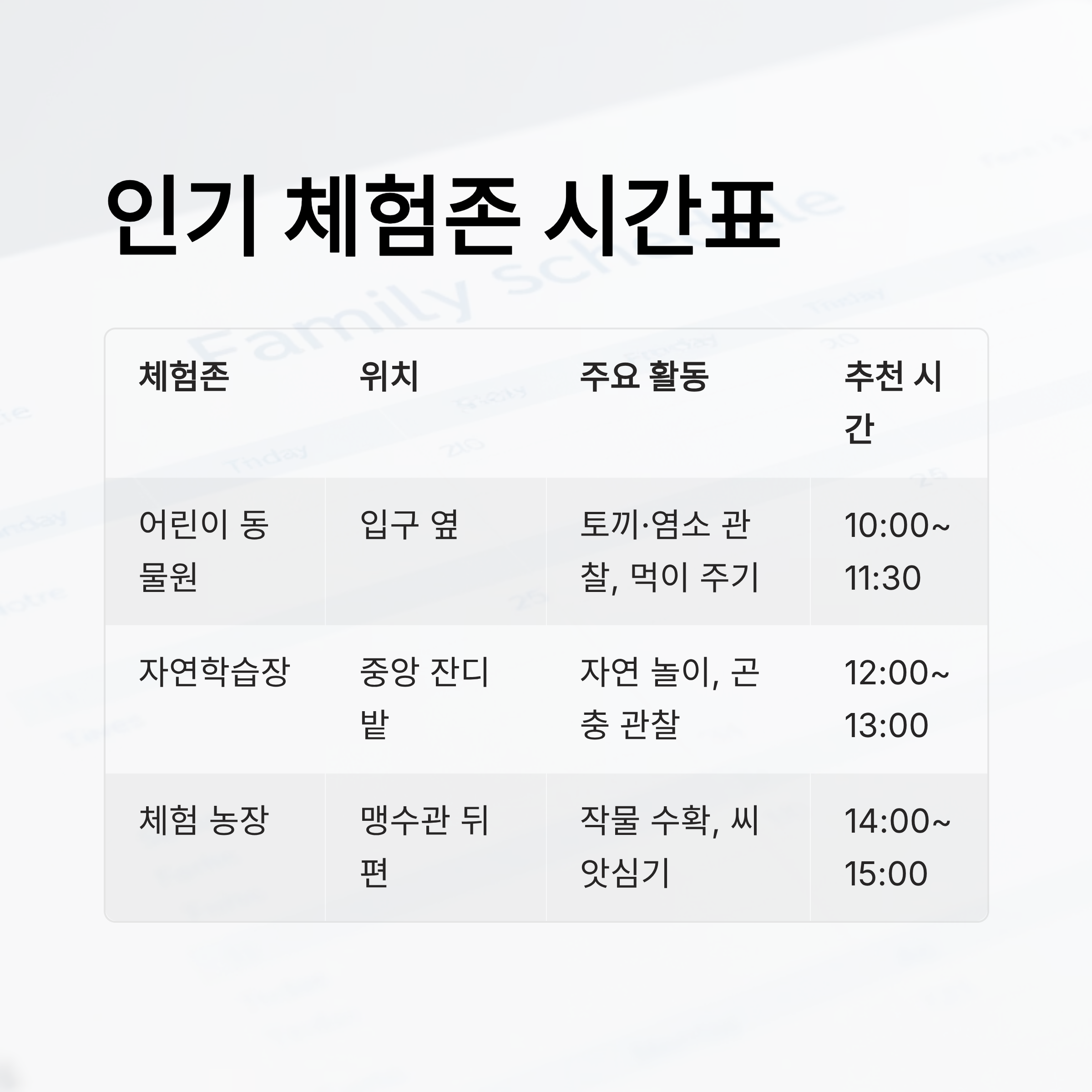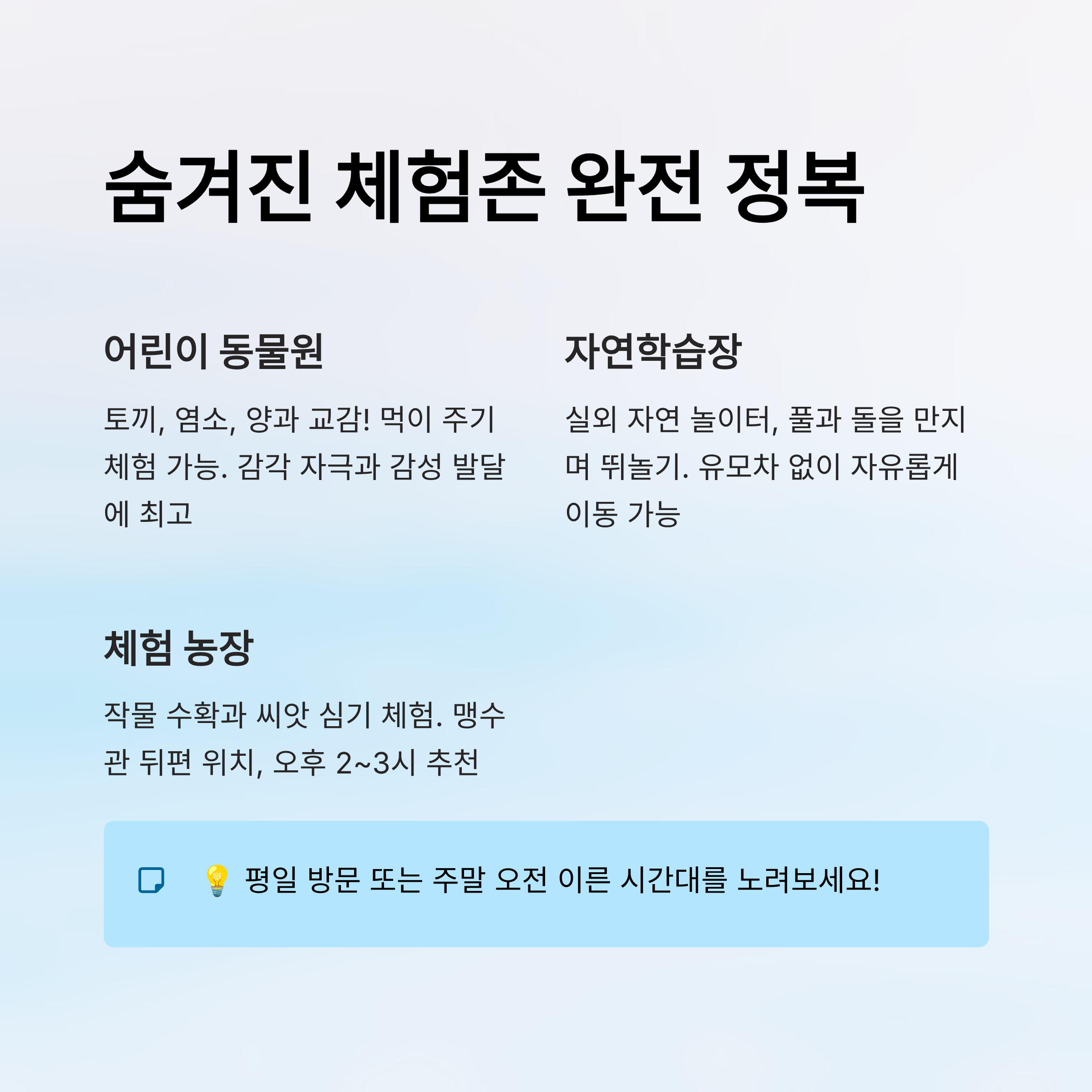 ※ 본 콘텐츠는 2025년 기준 서울대공원 공식 정보를 기반으로 작성되었으며, 체험존 운영 시간 및 위치는 현장 사정에 따라 변경될 수 있어요. 방문 전 공식 홈페이지나 고객센터를 통해 최신 정보를 꼭 확인해 주세요.